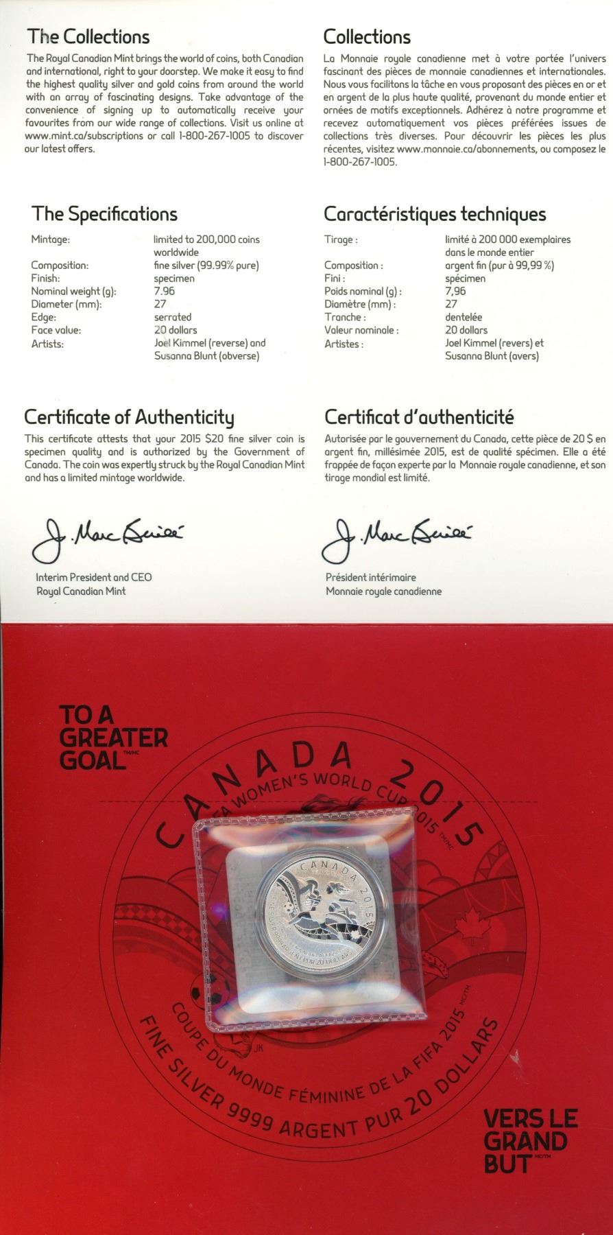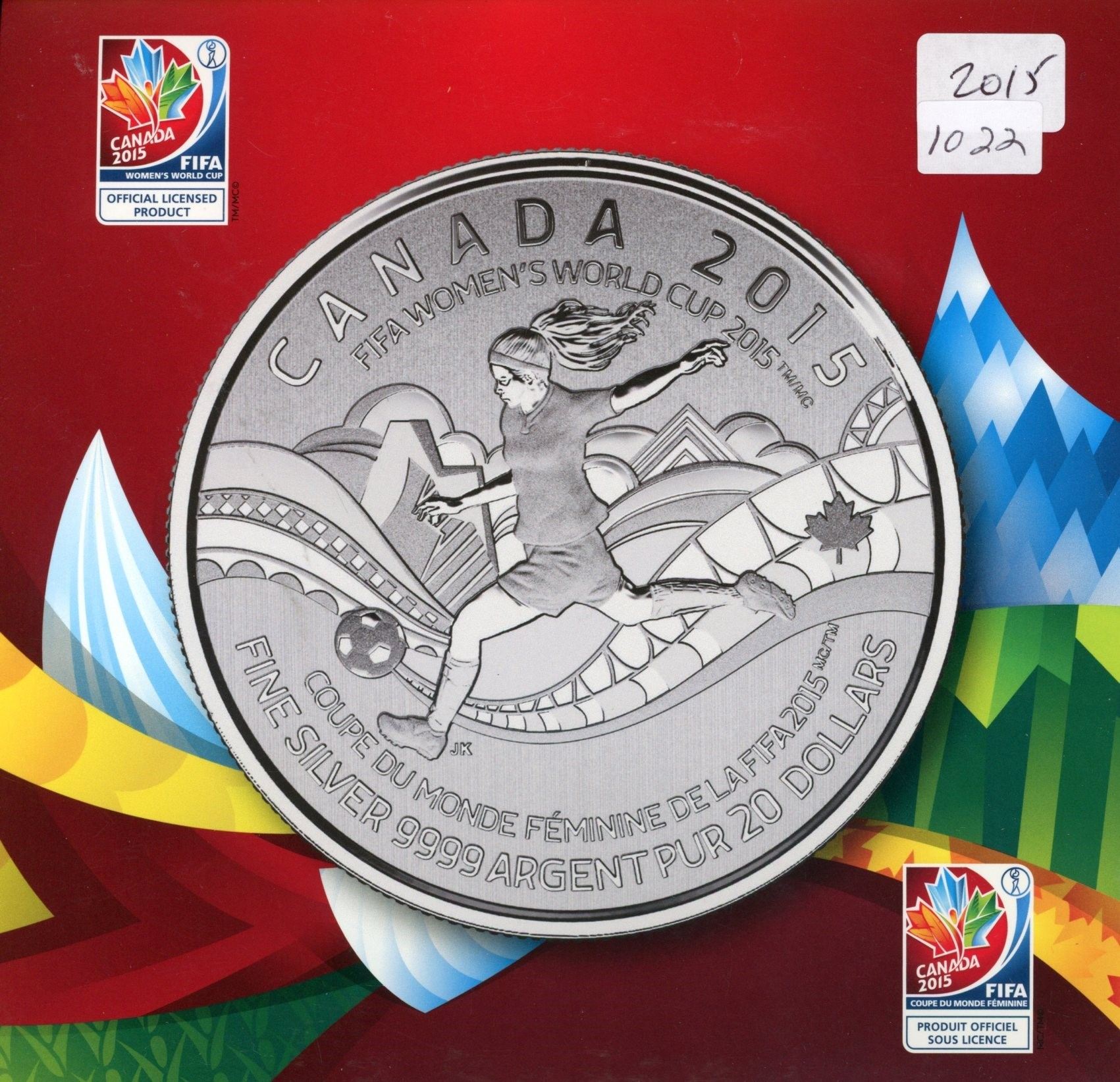 2015 FIFA Women’s Cup Soccer Silver $20. .9999 pure silver. Housed in folder of issue.