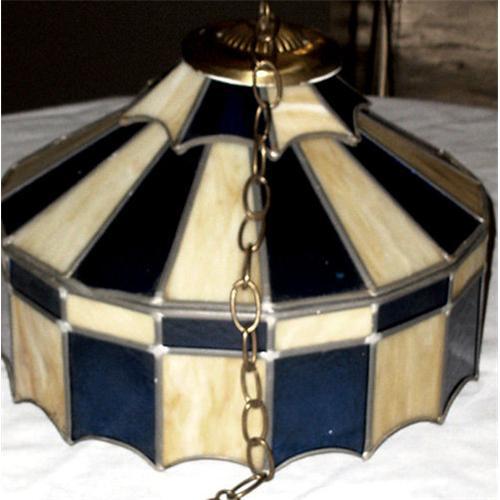 Terrific Hanging Lamp. Coloful with brass chain and Big Top-like shape.