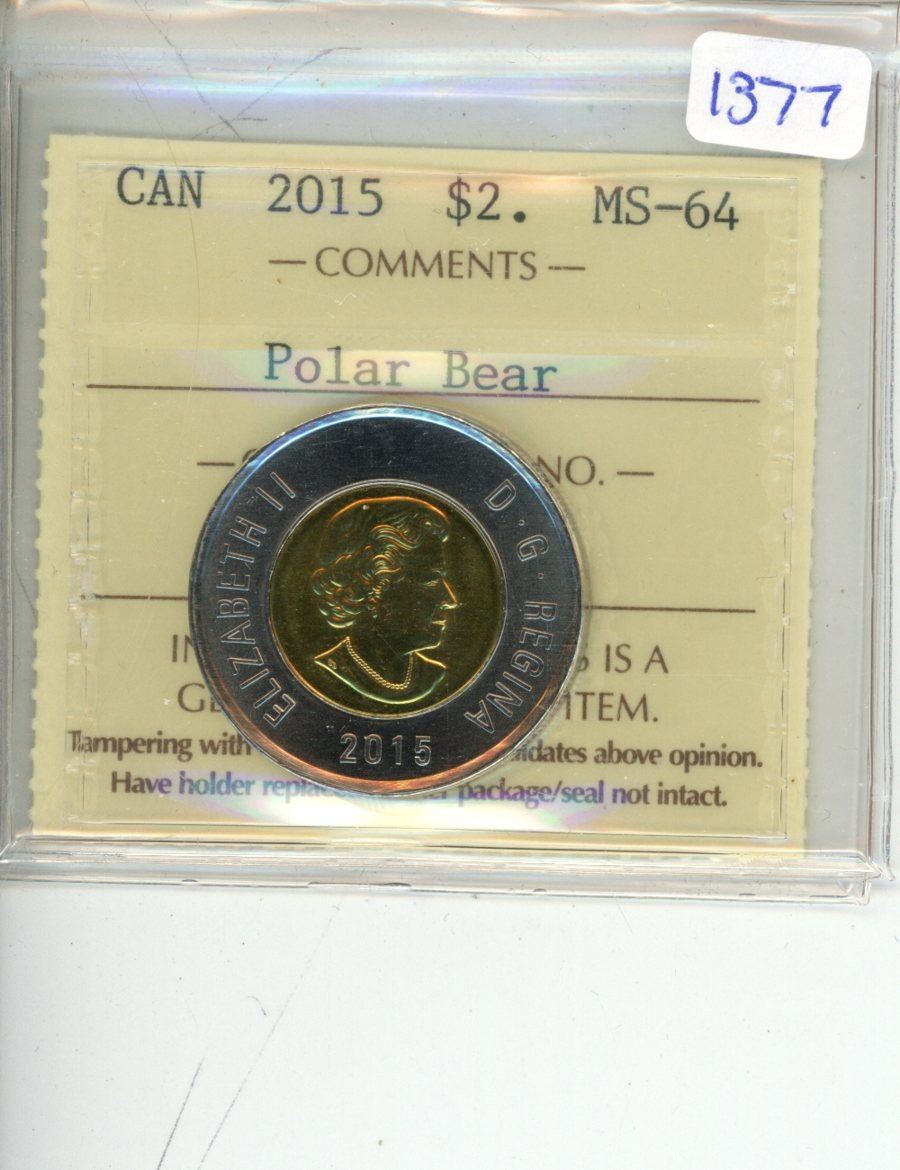 2015 ICCS graded, Canadian 2 dollar coin - MS64 Polar Bear