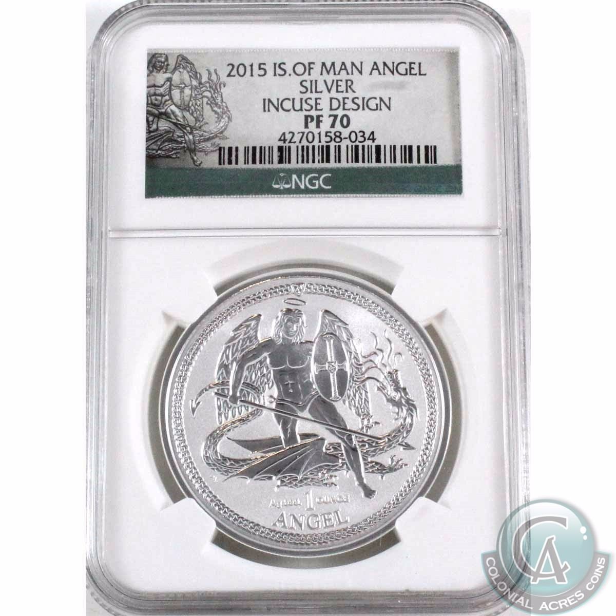 2015 Isle of Man Angel 1oz .999 fine Silver; Incuse Design NGC Certified PF-70 (Tax Exempt)