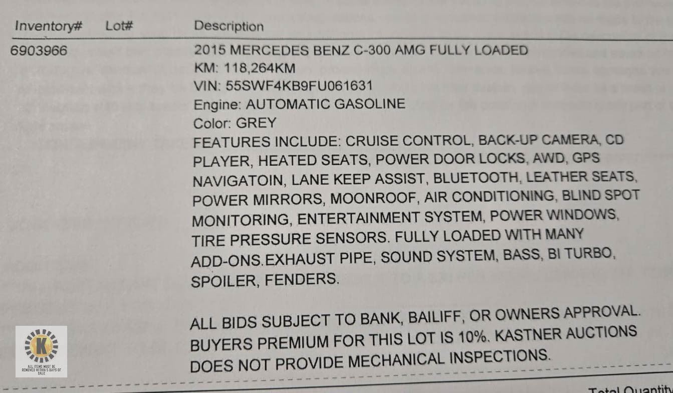 ALL BIDS SUBJECT TO BANK, BAILIFF, OR OWNERS APPROVAL. BUYERS PREMIUM FOR THIS LOT IS 10%. KASTNER AUCTIONS DOES NOT PROVIDE MECHANICAL INSPECTIONS. **ALL ITEMS MUST BE REMOVED BY 5PM SATURDAY, APRIL 5TH 2025. ALL REMAINING ITEMS WILL BE SUBJECT TO A $6.00 PER DAY STORAGE CHARGE. ANY ITEMS REMAINING AFTER MONDAY, MAY 5TH 2025 WILL BE CONSIDERED FORFEITED. NO REFUNDS WILL BE ISSUED FOR FORFEITED ITEMS. TO SCHEDULE A PICK UP APPOINTMENT CLICK HERE