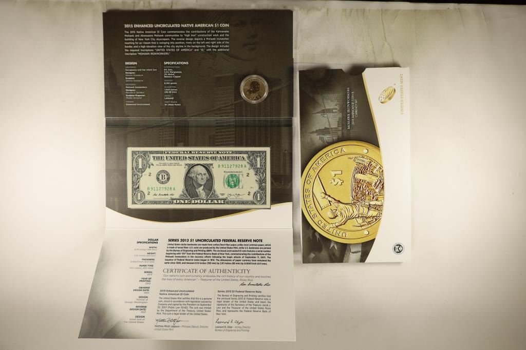 SET: FEATURING 2015 $1 NATIVE AMERICAN COIN AND 2003 $1 FRN CRISP UNC, ORIGINAL US MINT PACKAGING