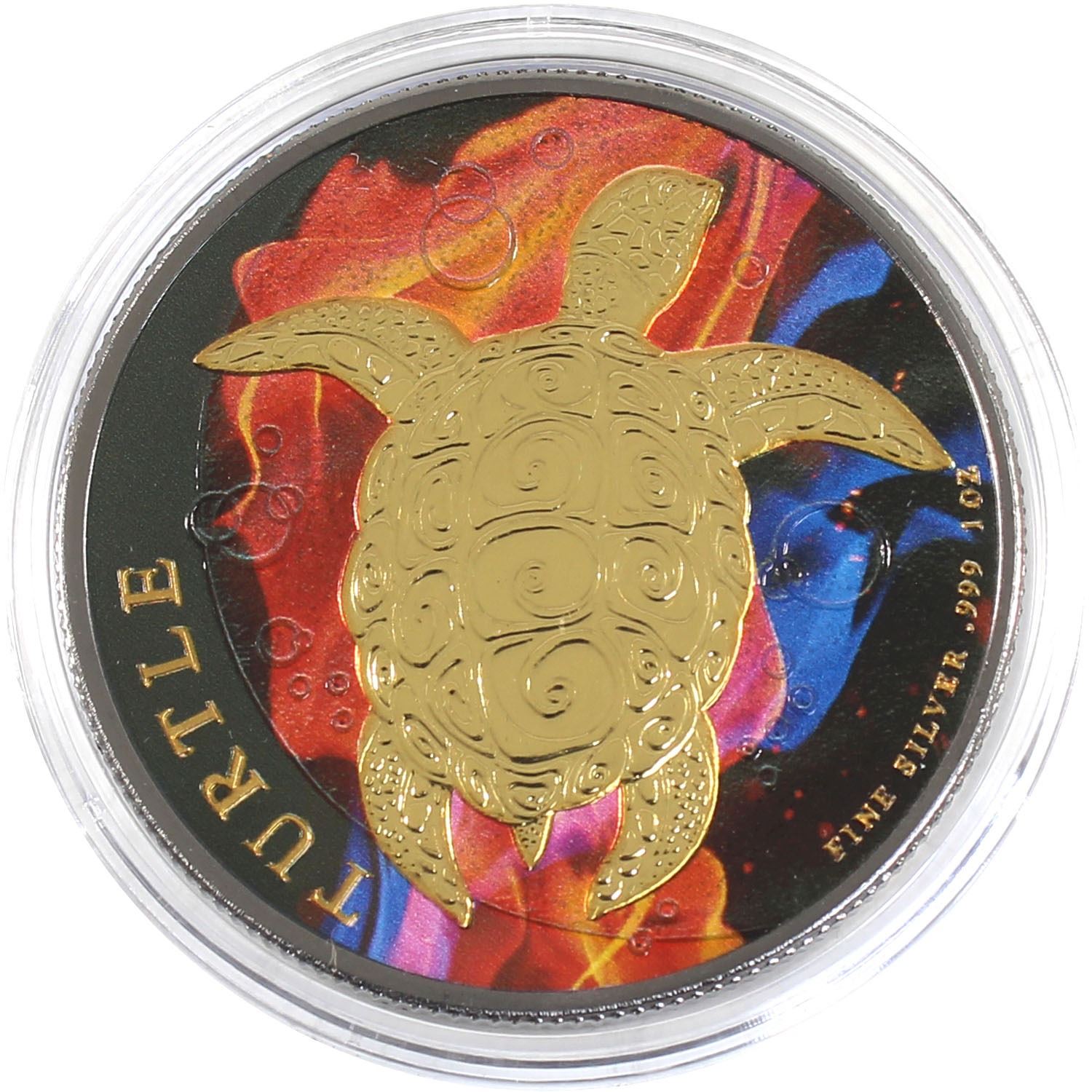 2015 Niue 1oz Coloured & Gilded .999 Fine Silver Turtle in Capsule (TAX Exempt).