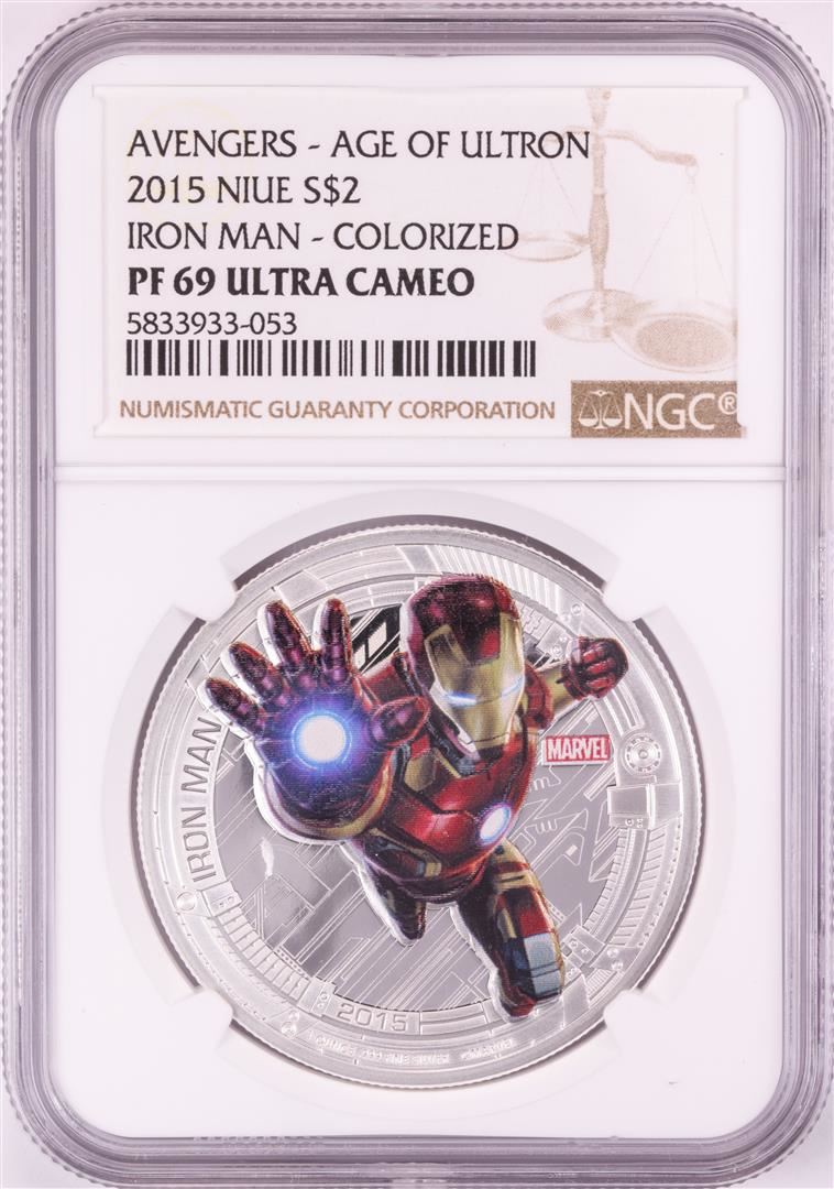 One 2015 Niue $2 Proof Avengers Age of Ultron Iron Man Silver Coin NGC PF69 Ultra Cameo. NGC Certified.
