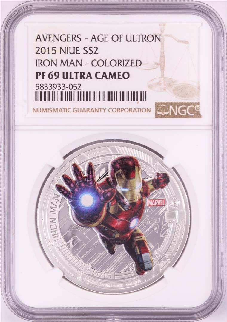 One 2015 Niue $2 Proof Avengers Age of Ultron Iron Man Silver Coin NGC PF69 Ultra Cameo. NGC Certified.