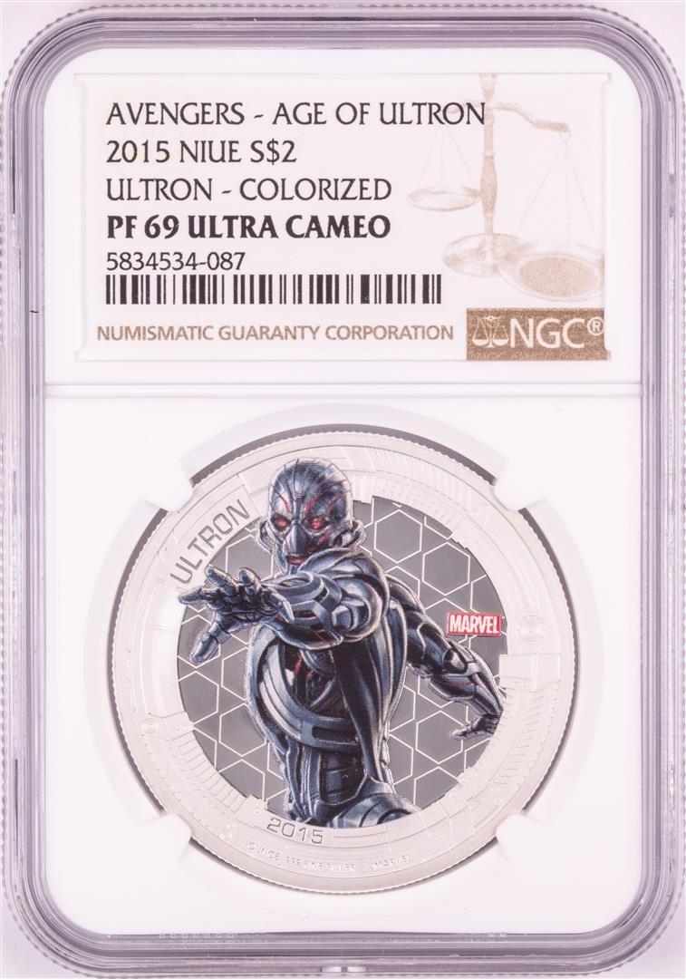 One 2015 Niue $2 Proof Avengers Age of Ultron Silver Coin NGC PF69 Ultra Cameo. NGC Certified.