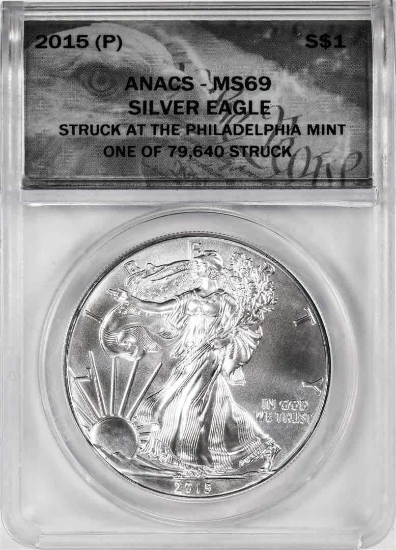 2015-(P) $1 American Silver Eagle Coin ANACS MS69 Philadelphia Mint