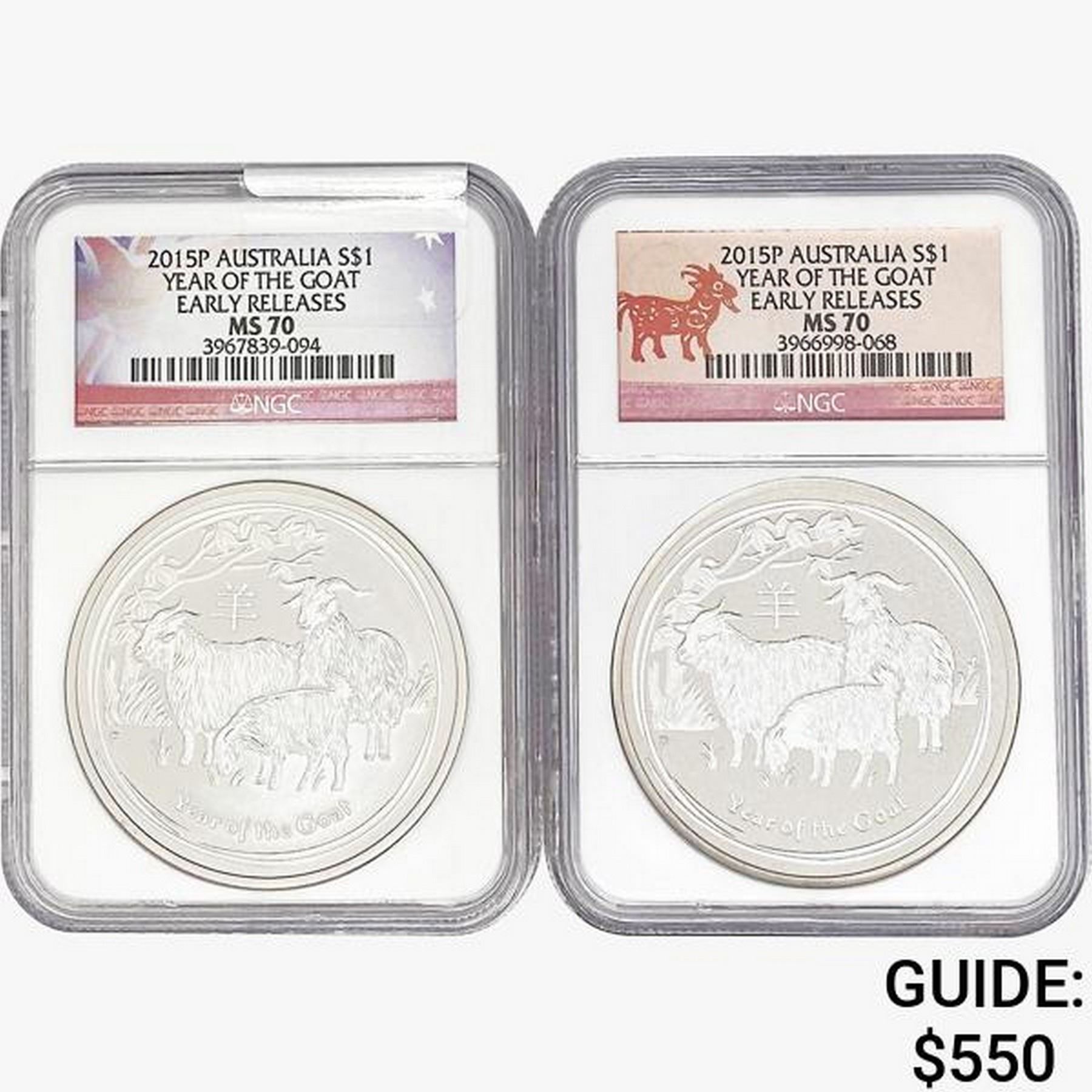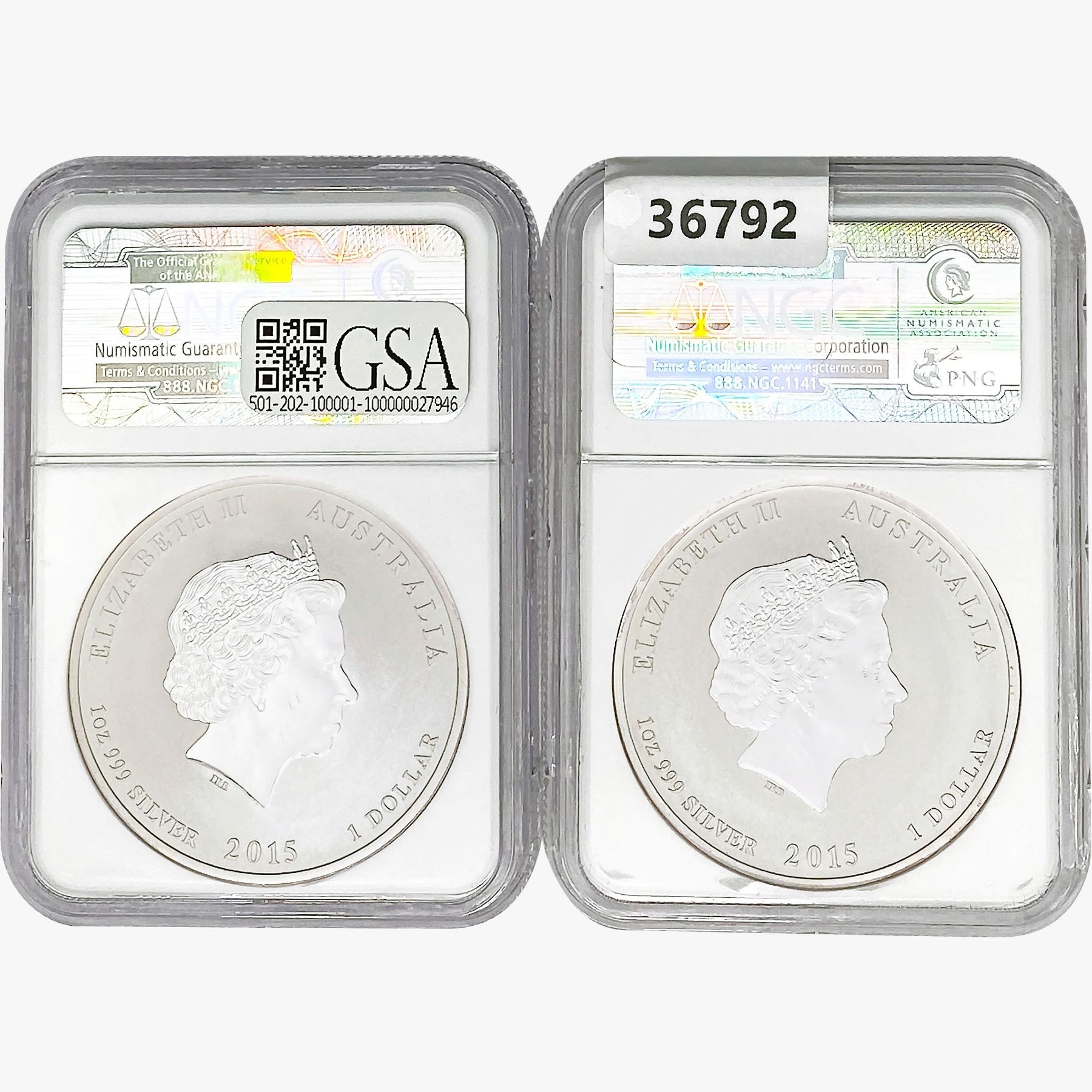 2015-P 1oz Silver Australia $1-Goat NGC MS70