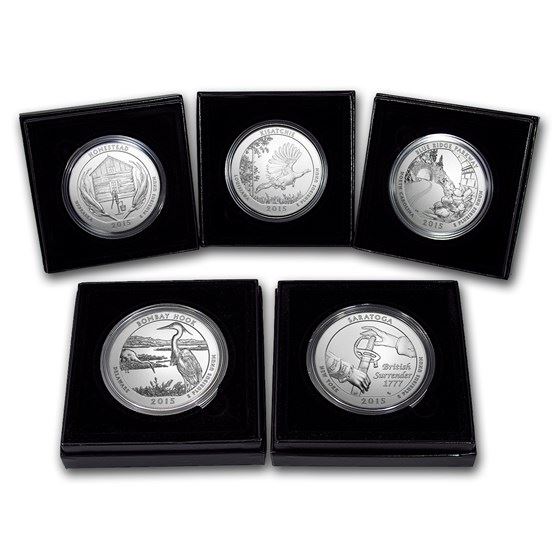 One piece 2015-P 5-Coin 5 oz Silver Burnished ATB Set (w/Box & COA)