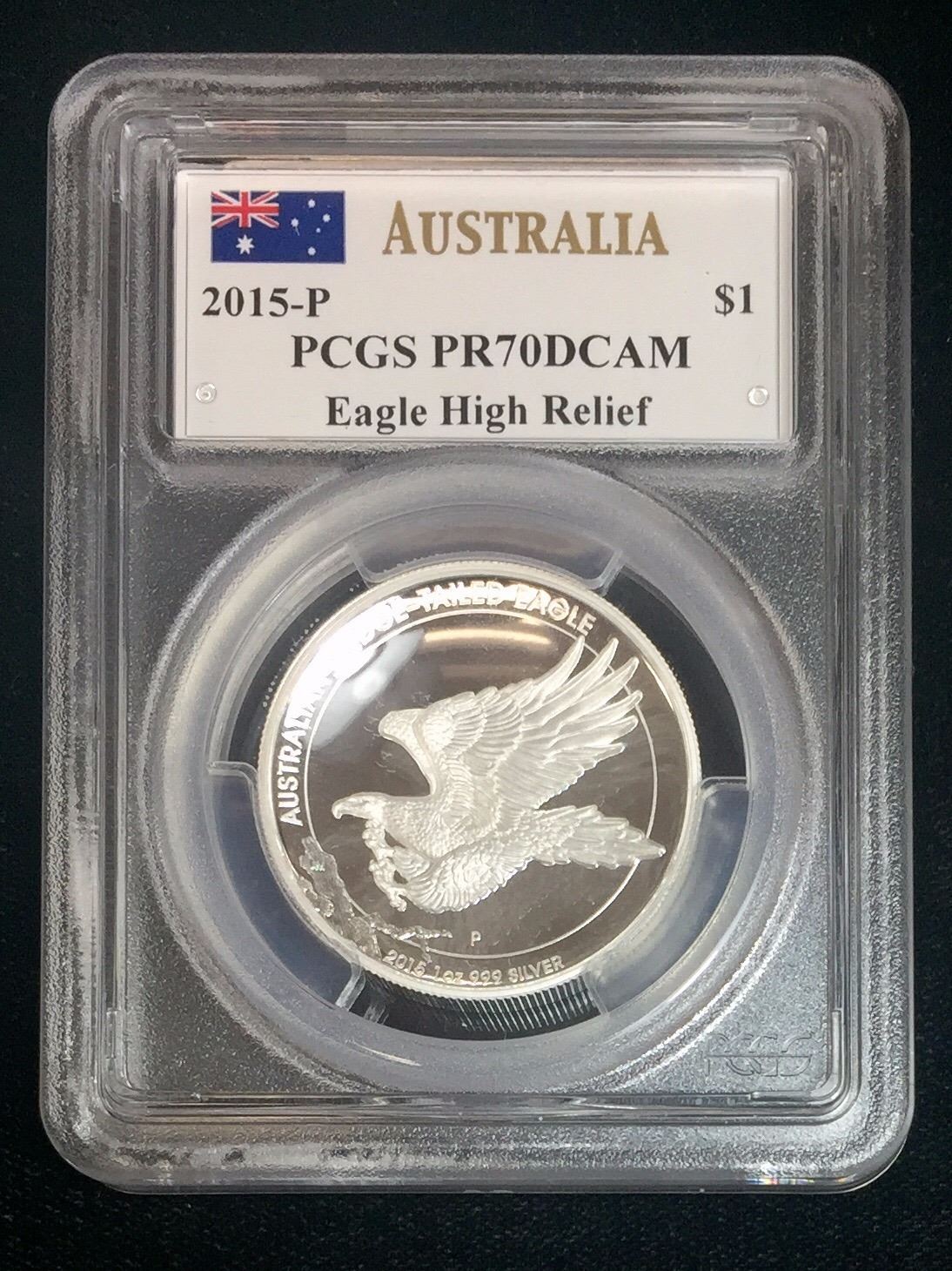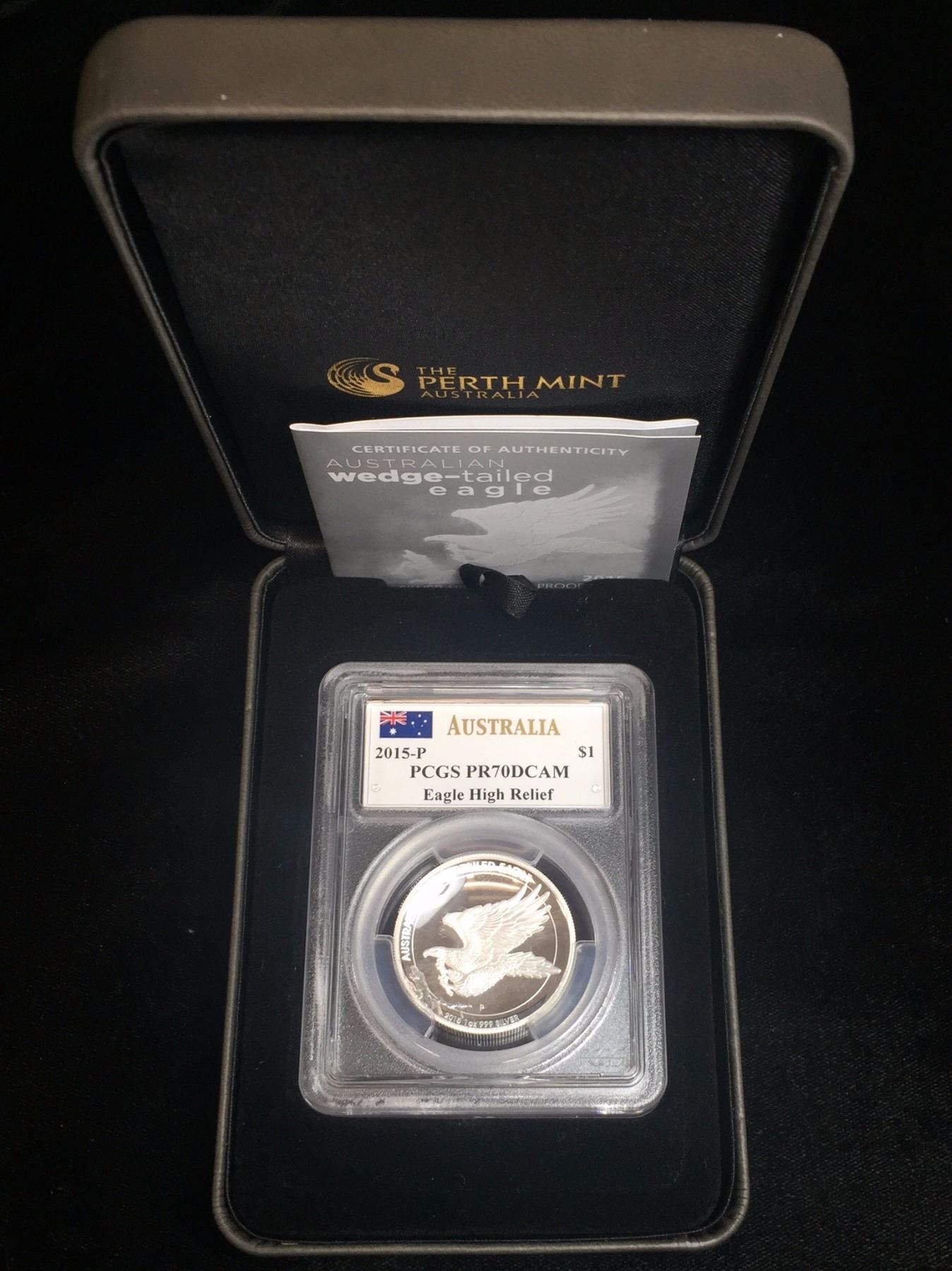 Lot 22 2015 $1 Australia Wedge-Tailed Eagle NGC PR70 Ceep Cameo High Relief, Mercanti Signed