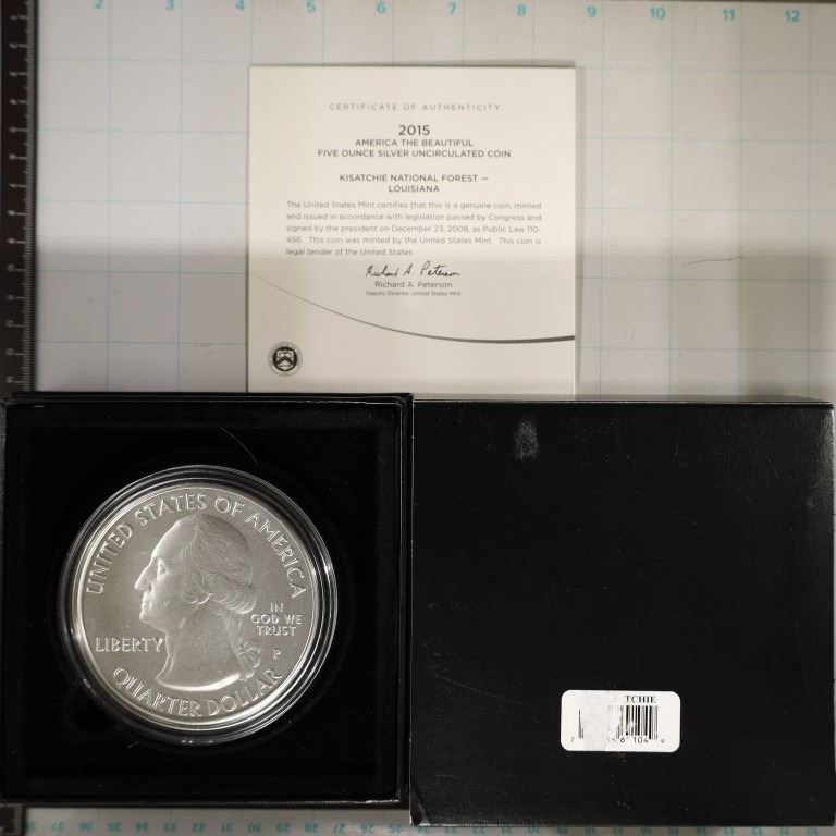 KISATCHIE NATIONAL FOREST - LOUISIANA. IN ORIGINAL US MINT PACKAGING WITH CERTIFICATE, IN HARD PLASTIC CAPSULE .999 FINE SILVER