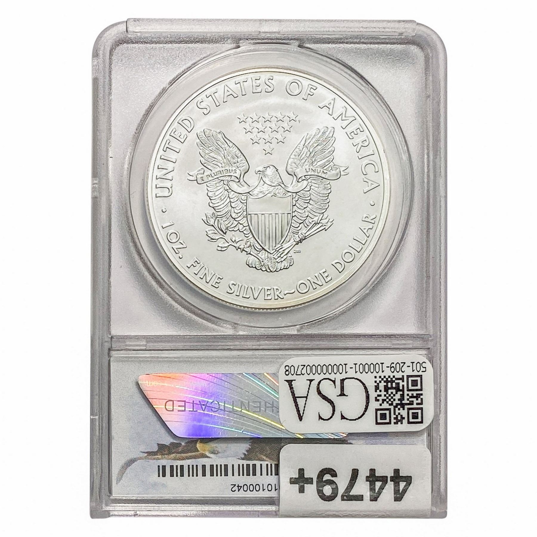 COINS AND CURRENCY LISTED IN GSA’S CATALOG AS GRADED AND ENCAPSULATED BY PCGS, NGC, ANACS, ICG, PCGS CURRENCY, PMG, PCGS BANKNOTE GRADING, CMC OR ANY OTHER THIRD-PARTY GRADING SERVICE ARE LIKEWISE SOLD “AS-IS” EXCEPT AS EXPRESSLY SET FORTH HEREIN. ALL THIRD-PARTY GRADING SERVICE GUARANTEES, INCLUDING AUTHENTICITY, ARE THE SOLE RESPONSIBILITY OF THE THIRD-PARTY GRADING SERVICE AND NOT WARRANTIES OR GUARANTEES OF GSA. BIDDERS SHOULD CONTACT THESE THIRD-PARTY GRADING SERVICES DIRECTLY WITH RESPECT TO ANY CLAIMS OR QUESTIONS THEY MAY HAVE CONCERNING THEIR GUARANTEES AND WARRANTIES. BIDDERS ACKNOWLEDGE AND AGREE THAT AUCTIONEER IS NOT BOUND BY OR LIABLE FOR ANY OPINION OR CERTIFICATION BY ANY THIRD-PARTY GRADING SERVICE. REMOVAL OF A PRODUCT FROM ITS PROTECTIVE CASING OR HOLDER OR ALTERATION OF ANY COIN HOLDER WAIVES ALL RIGHTS CONCERNING THE PRODUCT CONTAINED THEREIN.