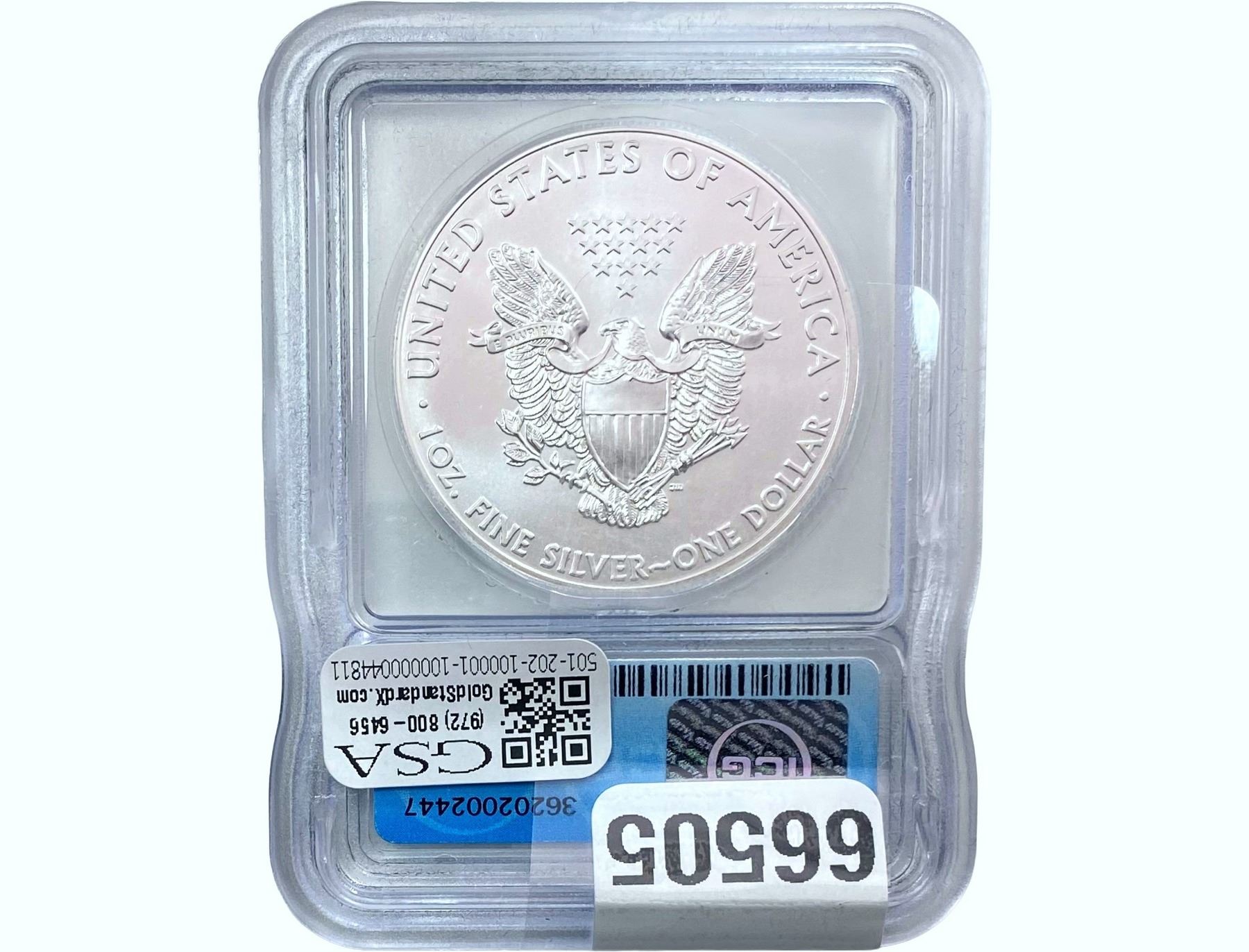 e. Coins sold referencing a third-party grading service are sold “AS IS” without any express or implied warranty, except for a guarantee by GSA that they are genuine. Removal or alteration of the holder, voids all of Bidder’s claims concerning that Product. Certain warranties may be available from the grading services and Bidders are referred to them for further details: Numismatic Guaranty Corporation (NGC), PO Box 4776, Sarasota, FL 34230, www.ngccoin.com/services/writtenguarantee.asp; Professional Coin Grading Services (PCGS), PO Box 9458, Newport Beach, CA 92658, www.pcgs.com/guarantee.html; ANACS, 6555 S. Kenton St., Ste. 303, Englewood, CO 80111; and Independent Coin Grading Co. (ICG), 7901 East Bellview, Ave., Suite 50, Englewood, CO 80111.