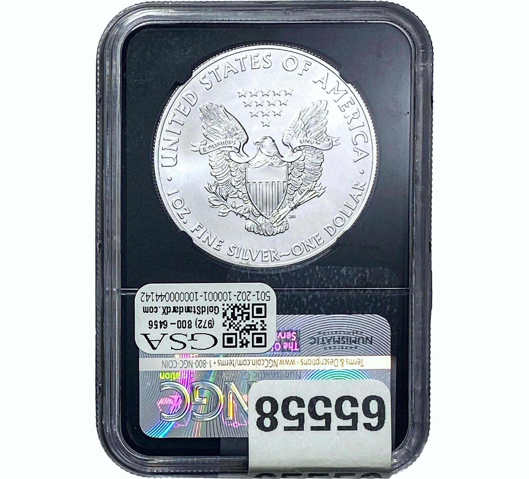 e. Coins sold referencing a third-party grading service are sold “AS IS” without any express or implied warranty, except for a guarantee by GSA that they are genuine. Removal or alteration of the holder, voids all of Bidder’s claims concerning that Product. Certain warranties may be available from the grading services and Bidders are referred to them for further details: Numismatic Guaranty Corporation (NGC), PO Box 4776, Sarasota, FL 34230, www.ngccoin.com/services/writtenguarantee.asp; Professional Coin Grading Services (PCGS), PO Box 9458, Newport Beach, CA 92658, www.pcgs.com/guarantee.html; ANACS, 6555 S. Kenton St., Ste. 303, Englewood, CO 80111; and Independent Coin Grading Co. (ICG), 7901 East Bellview, Ave., Suite 50, Englewood, CO 80111.