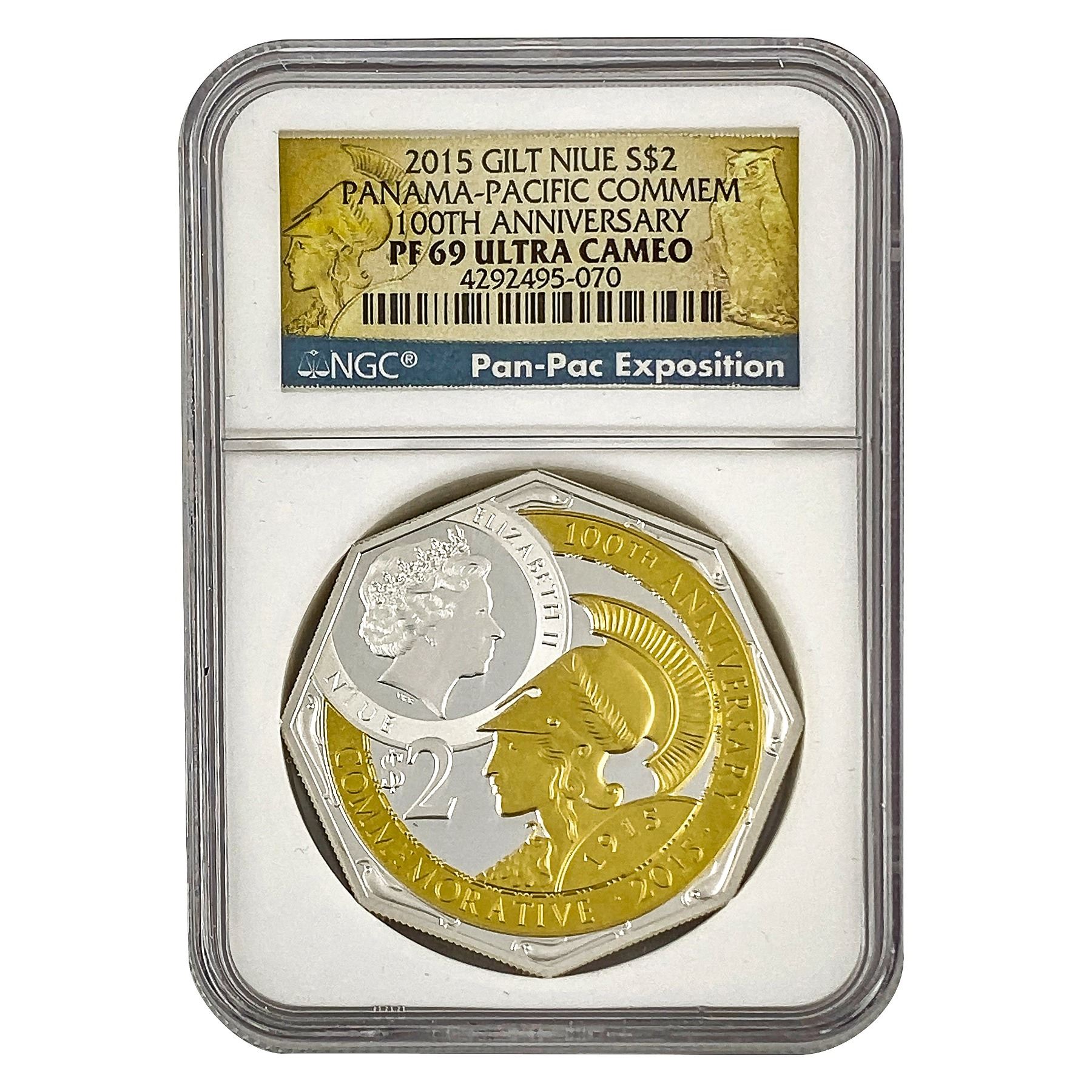 2015 Pan-Pac Gilt Silver $2 100th Anniversary Coin NGC PF69 DCAM