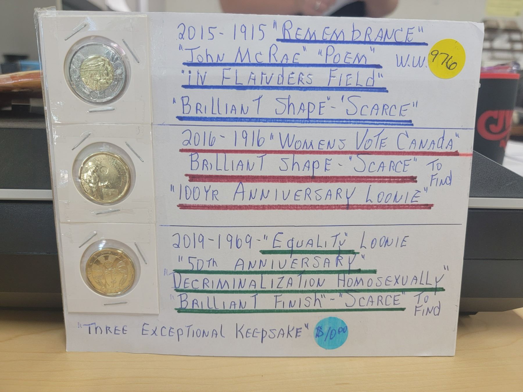 2015 REMEMBRANCE TOONIE, 2016 WOMENS VOTE LOONIE, 2019 EQUALITY LOONIE