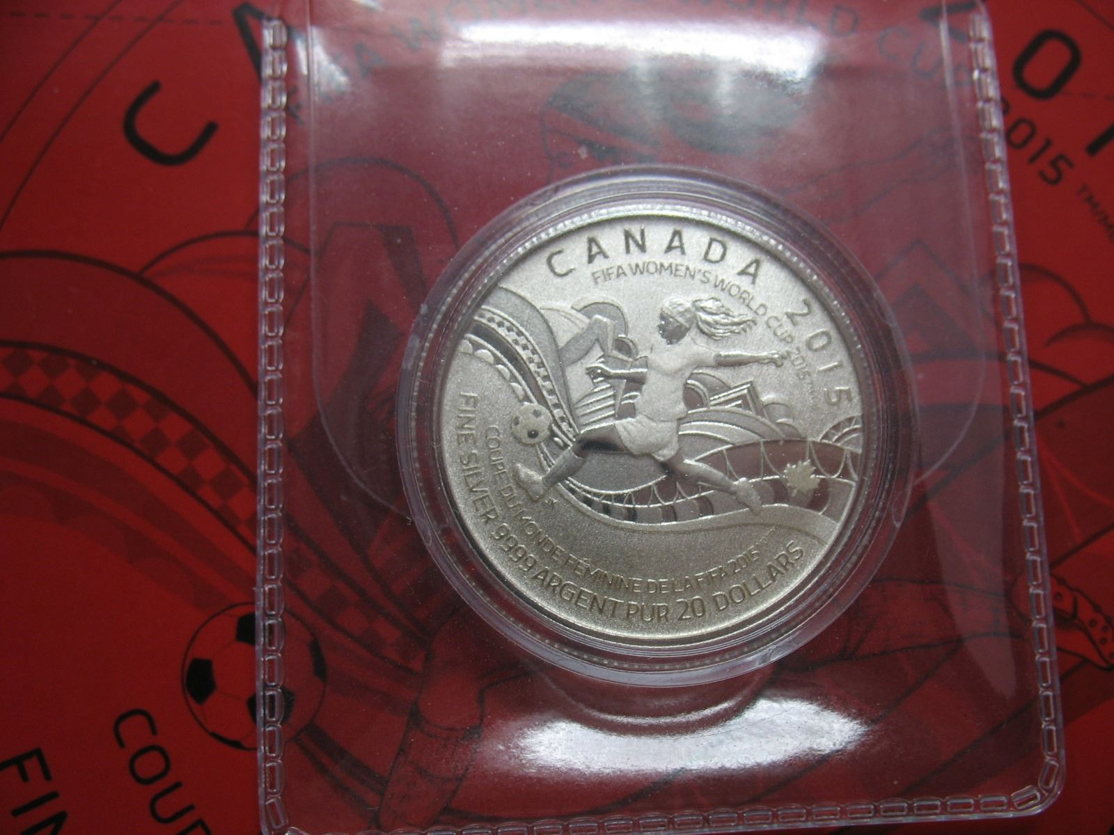 2015 ROYAL CANADIAN MINT $20 SILVER COIN (99.99 pure) - FIFA WOMEN'S WORLD CUP