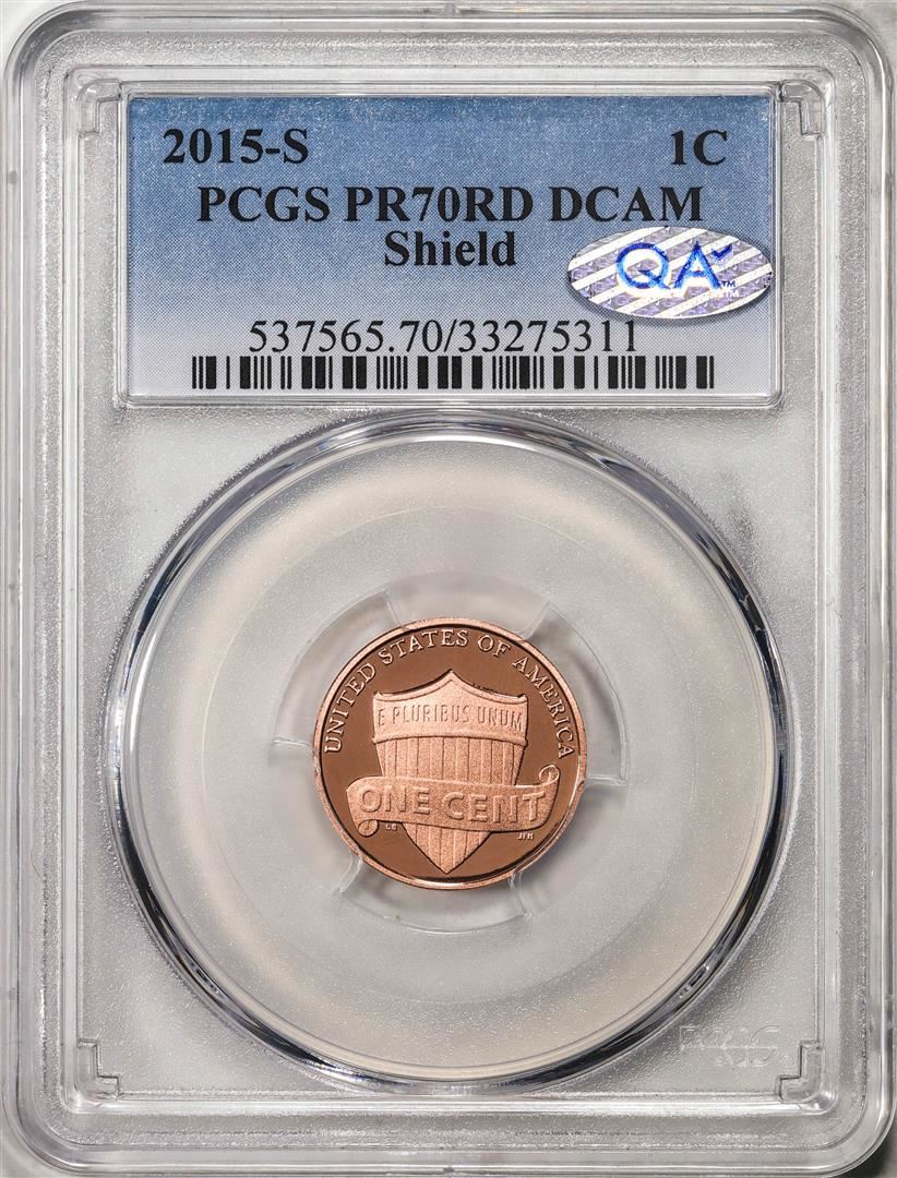 One 2015-S Proof Lincoln Shield Cent Coin PCGS PR70RD DCAM w/ QA Sticker. PCGS Graded.