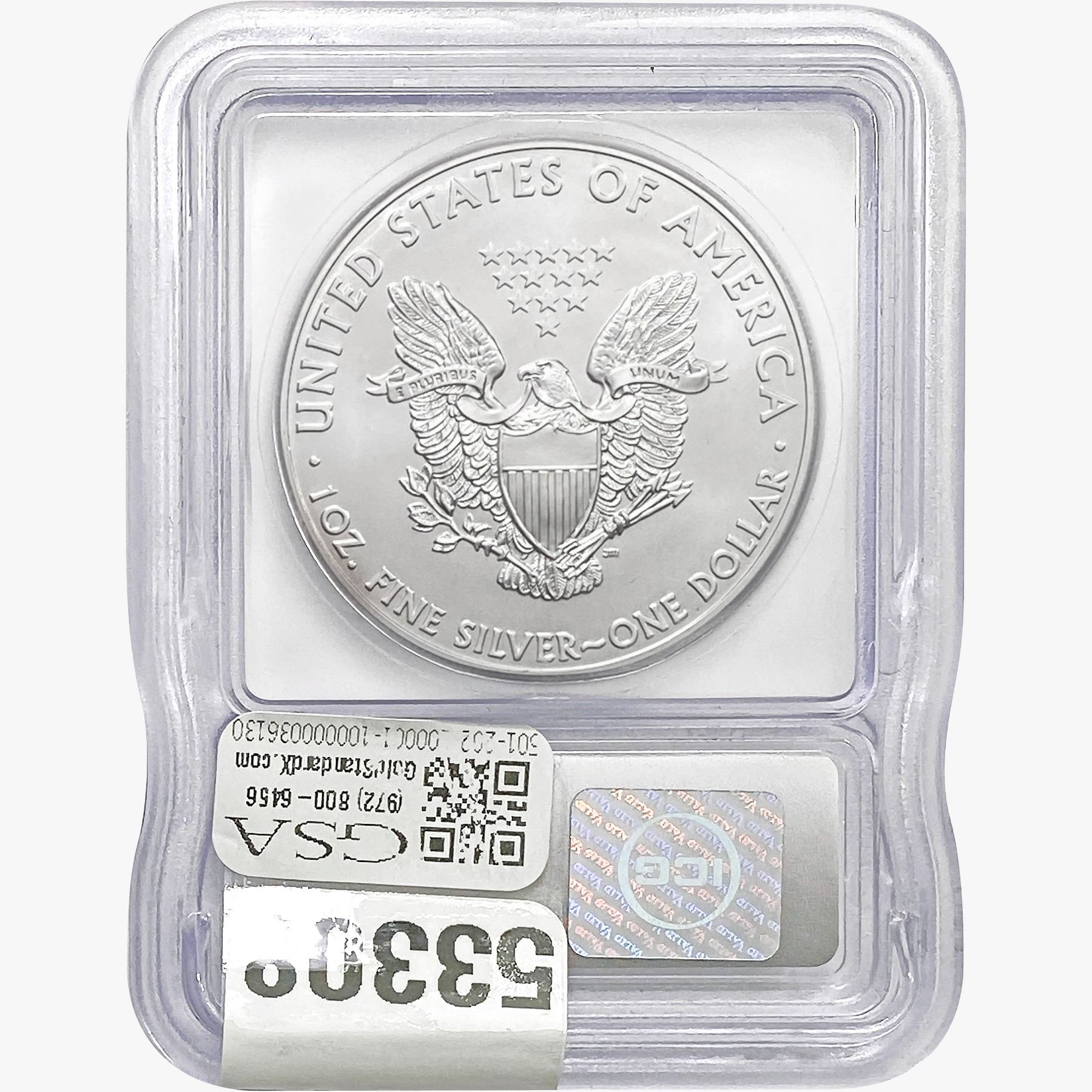 e. Coins sold referencing a third-party grading service are sold “AS IS” without any express or implied warranty, except for a guarantee by GSA that they are genuine. Removal or alteration of the holder, voids all of Bidder’s claims concerning that Product. Certain warranties may be available from the grading services and Bidders are referred to them for further details: Numismatic Guaranty Corporation (NGC), PO Box 4776, Sarasota, FL 34230, www.ngccoin.com/services/writtenguarantee.asp; Professional Coin Grading Services (PCGS), PO Box 9458, Newport Beach, CA 92658, www.pcgs.com/guarantee.html; ANACS, 6555 S. Kenton St., Ste. 303, Englewood, CO 80111; and Independent Coin Grading Co. (ICG), 7901 East Bellview, Ave., Suite 50, Englewood, CO 80111.
