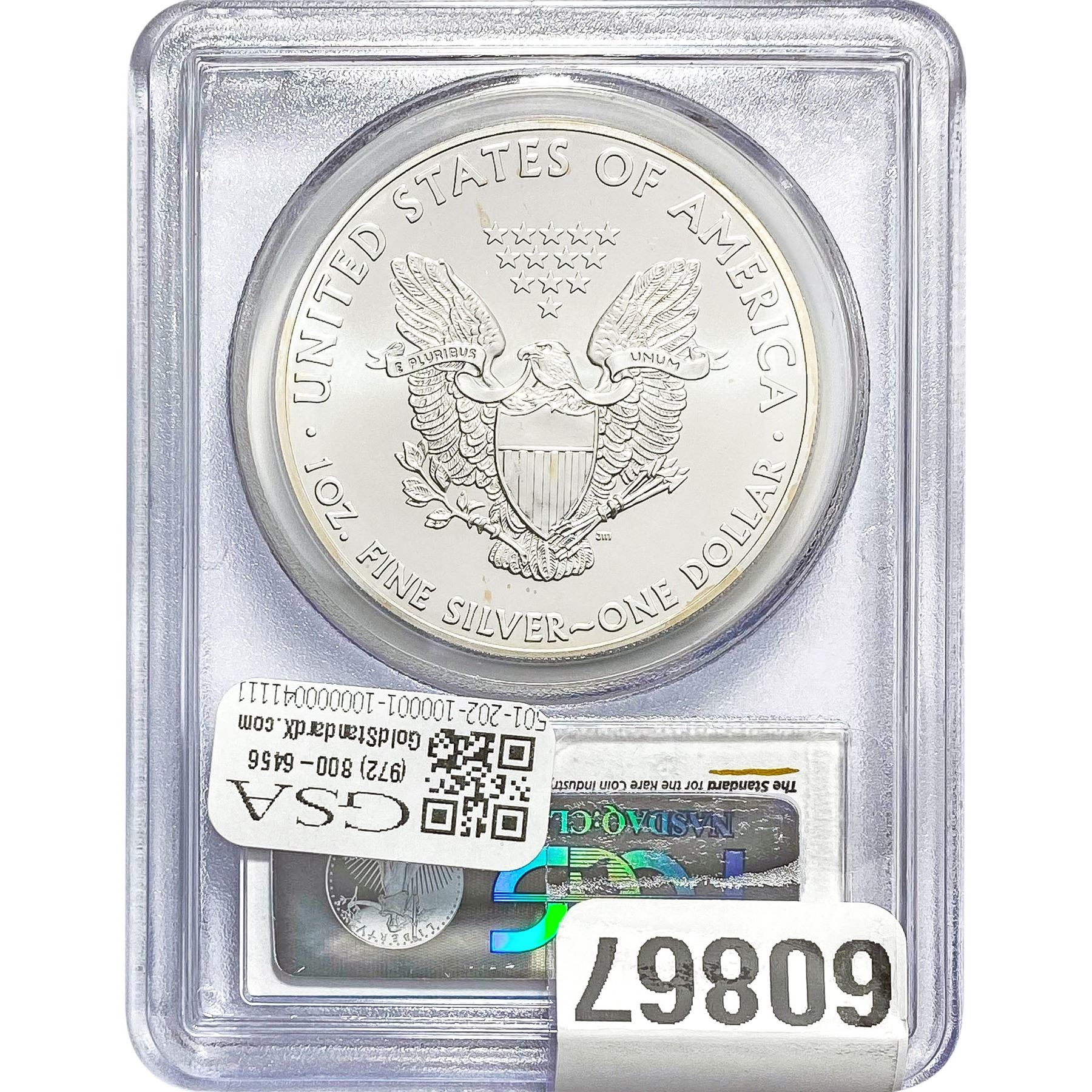 e. Coins sold referencing a third-party grading service are sold “AS IS” without any express or implied warranty, except for a guarantee by GSA that they are genuine. Removal or alteration of the holder, voids all of Bidder’s claims concerning that Product. Certain warranties may be available from the grading services and Bidders are referred to them for further details: Numismatic Guaranty Corporation (NGC), PO Box 4776, Sarasota, FL 34230, www.ngccoin.com/services/writtenguarantee.asp; Professional Coin Grading Services (PCGS), PO Box 9458, Newport Beach, CA 92658, www.pcgs.com/guarantee.html; ANACS, 6555 S. Kenton St., Ste. 303, Englewood, CO 80111; and Independent Coin Grading Co. (ICG), 7901 East Bellview, Ave., Suite 50, Englewood, CO 80111.