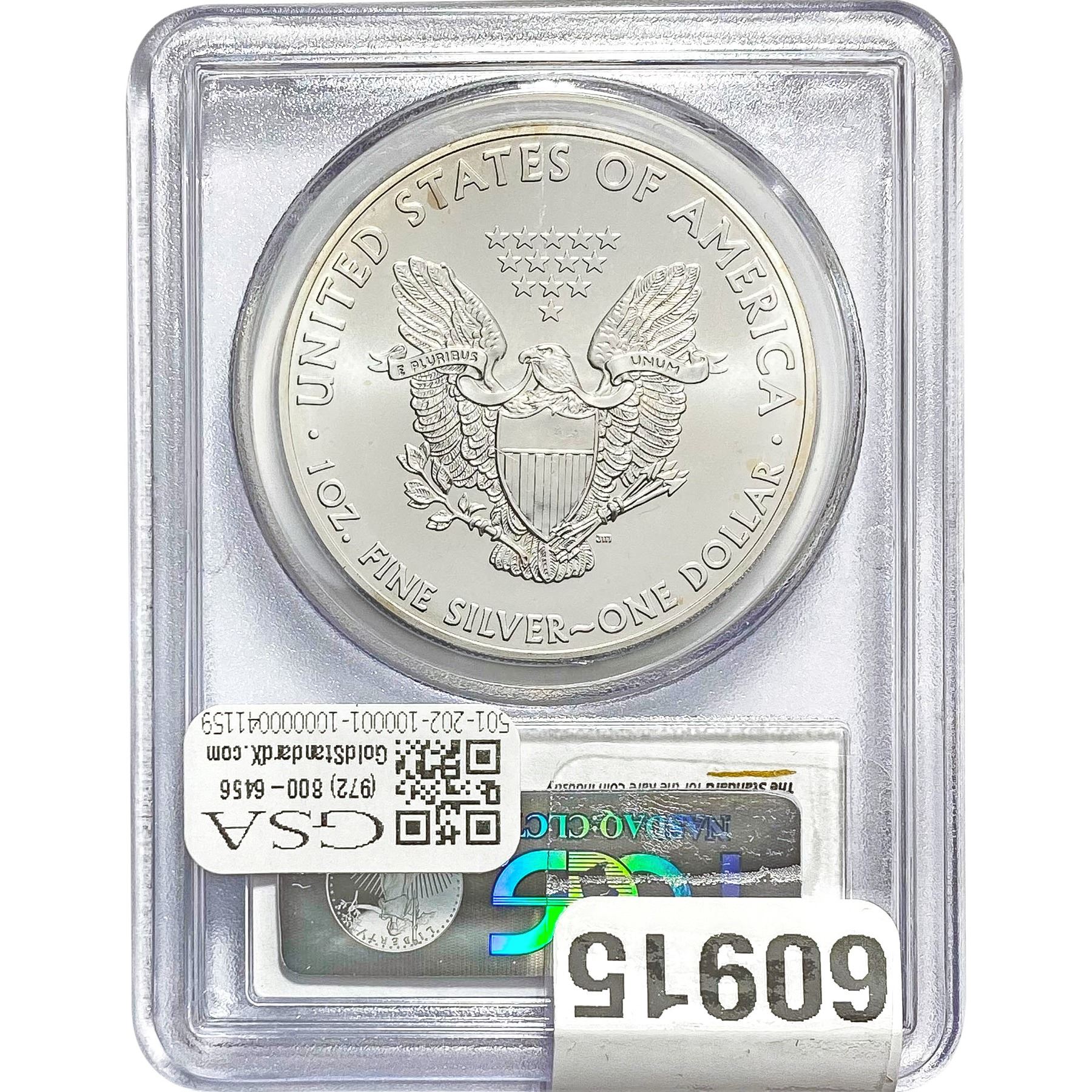 e. Coins sold referencing a third-party grading service are sold “AS IS” without any express or implied warranty, except for a guarantee by GSA that they are genuine. Removal or alteration of the holder, voids all of Bidder’s claims concerning that Product. Certain warranties may be available from the grading services and Bidders are referred to them for further details: Numismatic Guaranty Corporation (NGC), PO Box 4776, Sarasota, FL 34230, www.ngccoin.com/services/writtenguarantee.asp; Professional Coin Grading Services (PCGS), PO Box 9458, Newport Beach, CA 92658, www.pcgs.com/guarantee.html; ANACS, 6555 S. Kenton St., Ste. 303, Englewood, CO 80111; and Independent Coin Grading Co. (ICG), 7901 East Bellview, Ave., Suite 50, Englewood, CO 80111.