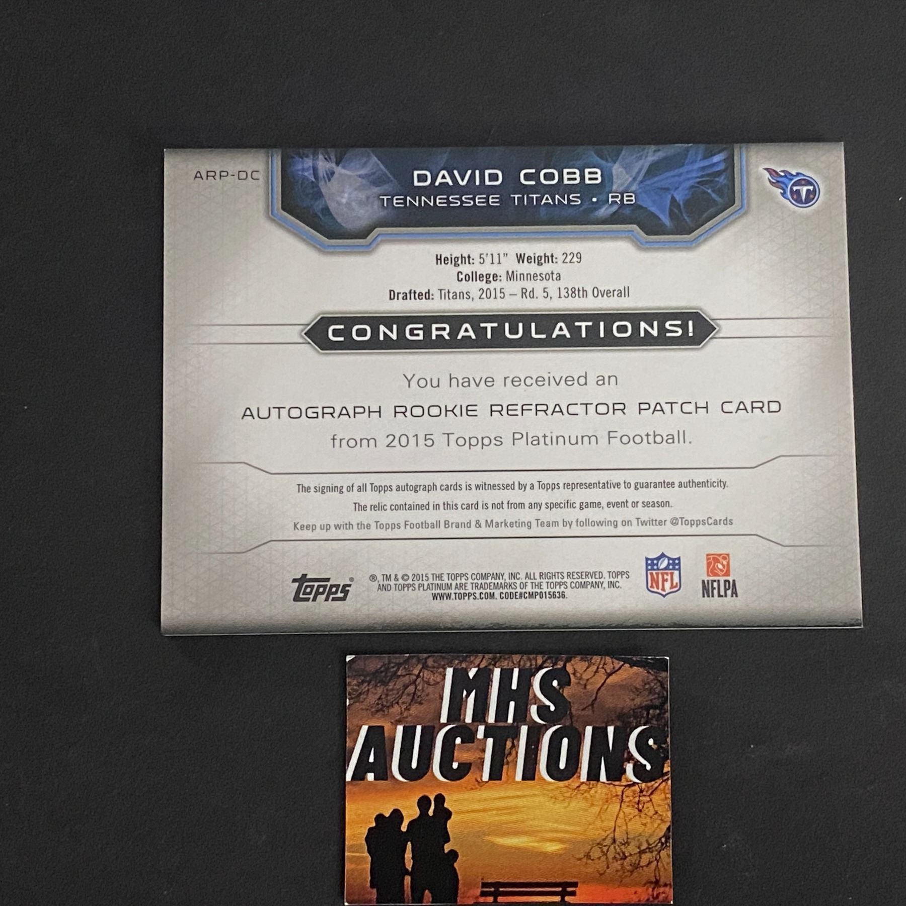 2015 TOPPS PATCH/AUTO CARD DAVID COBB FOOTBALL CARD