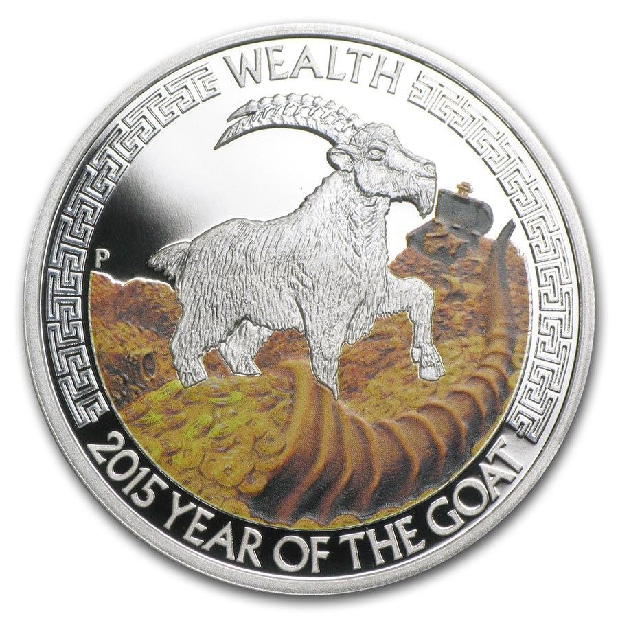 2015 Tuvalu 1 oz Silver Lunar Goat Proof (Wealth)
