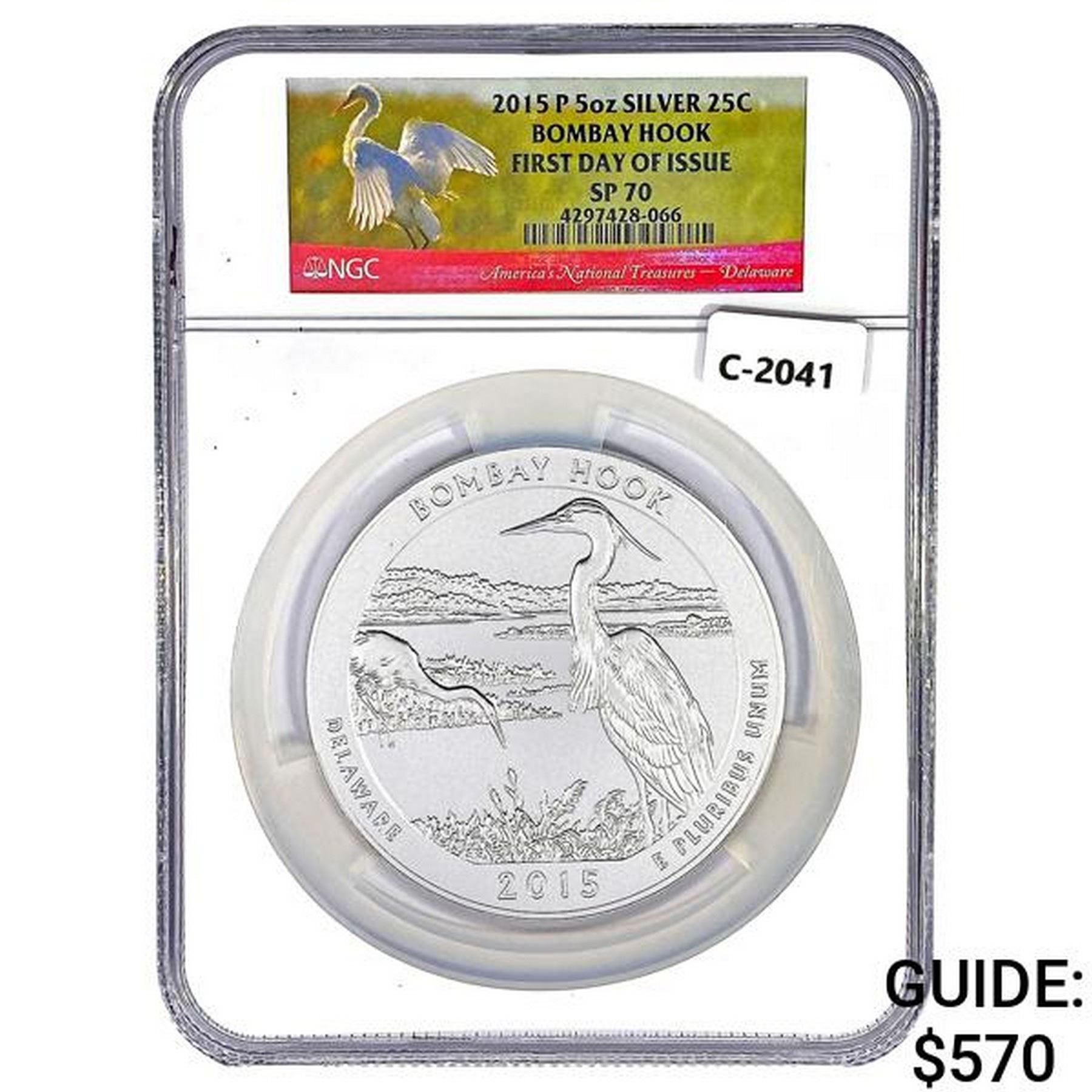 2015 US 5oz Silver Bombay Hook Round NGC SP70 1st