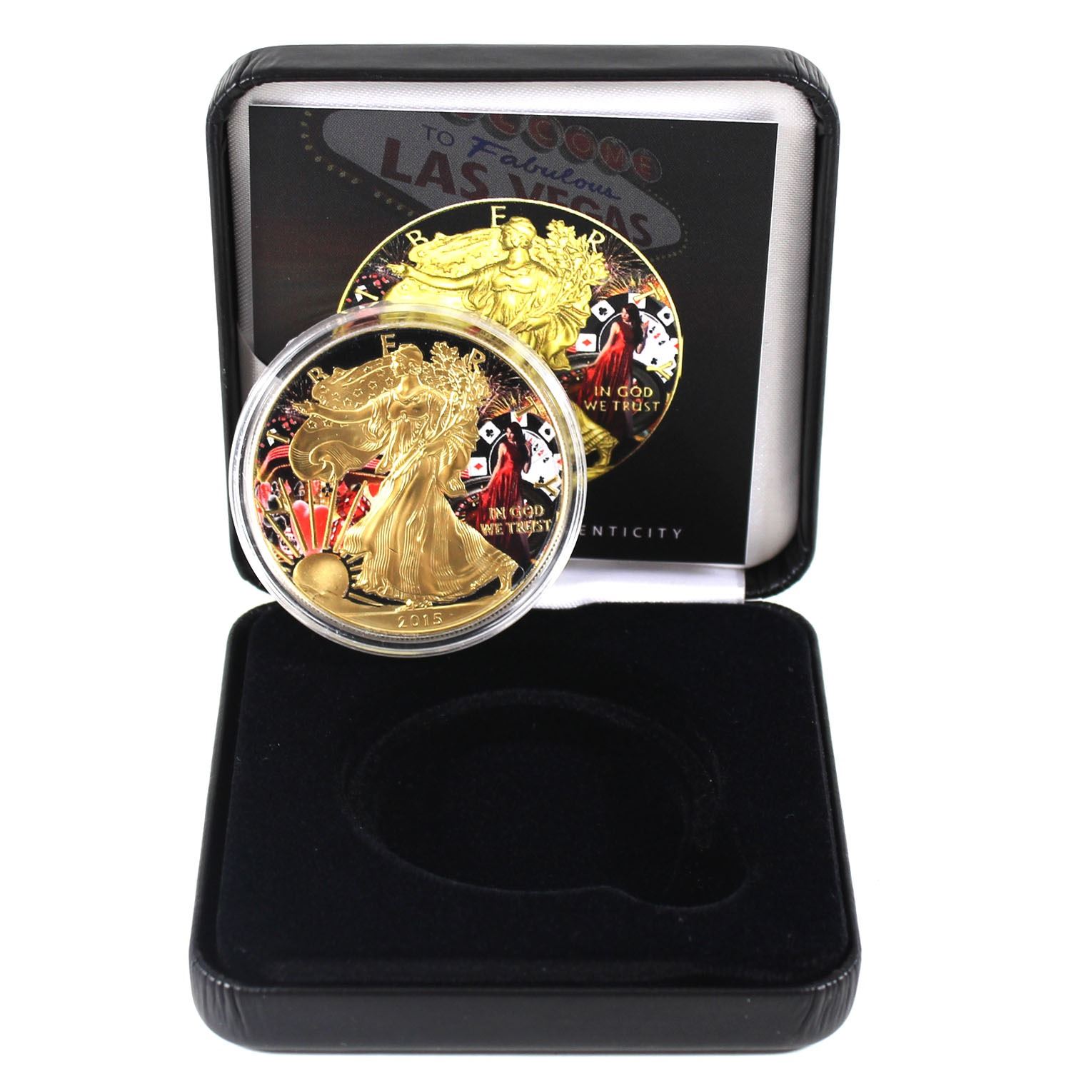 2015 USA $1 Coloured/Gilt 'Vegas Casino' 1oz Fine Silver Eagle (Tax Exempt) Coin comes encapsulated with a serialized COA and display box. Mintage 0155/500.