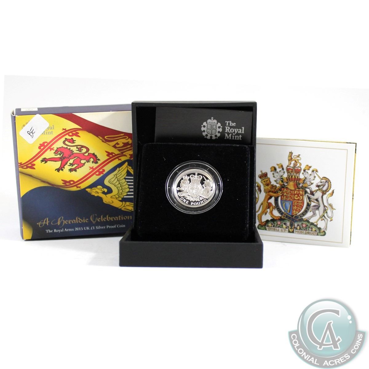 2015 United Kingdom 1 Pound 'The Royal Arms' Silver Proof coin.