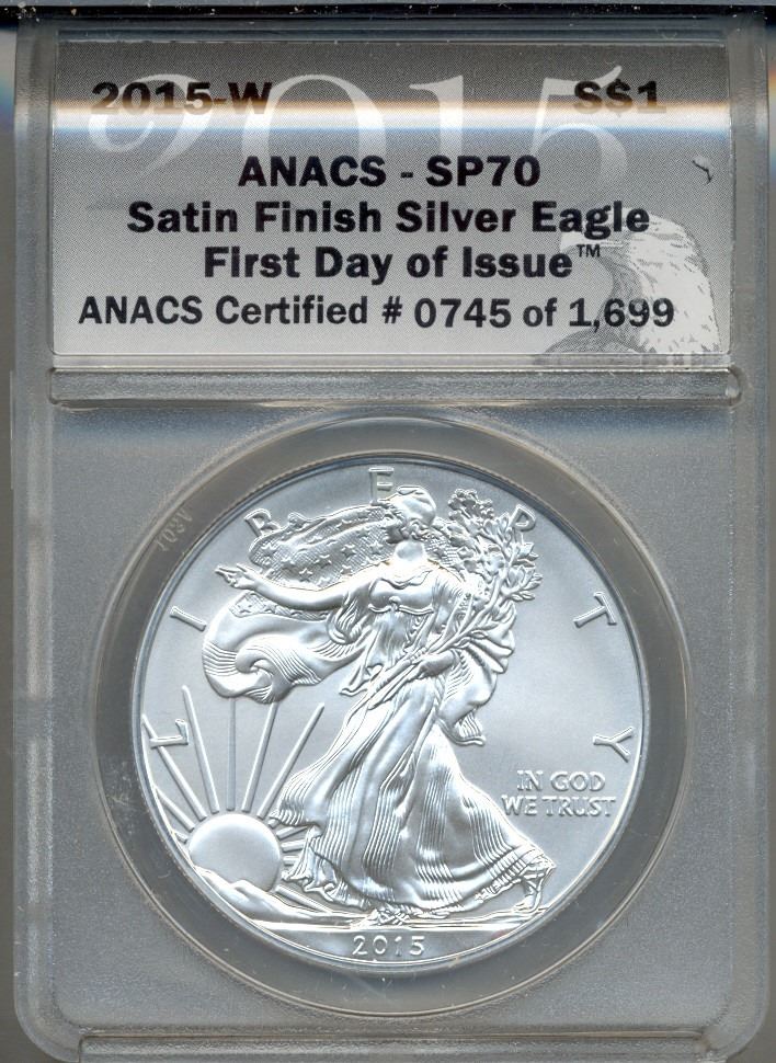 One 2015-W $1 American Silver Eagle Coin ANACS SP70.
