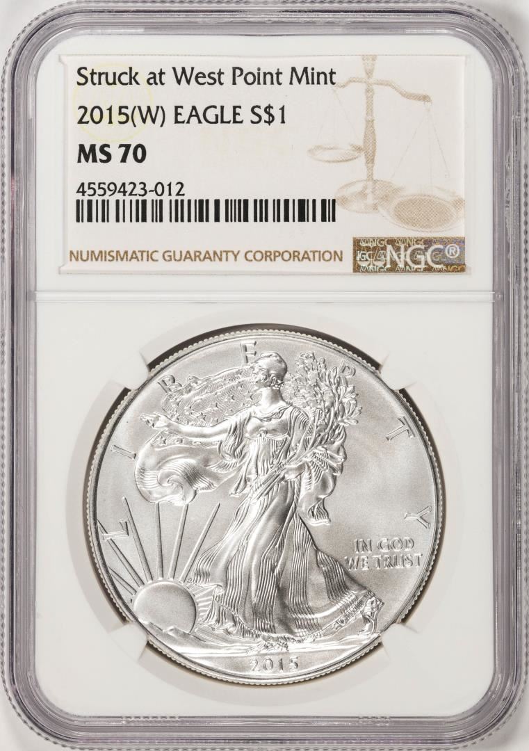 One 2015-(W) $1 American Silver Eagle Coin NGC MS70 West Point Mint. NGC Certified.