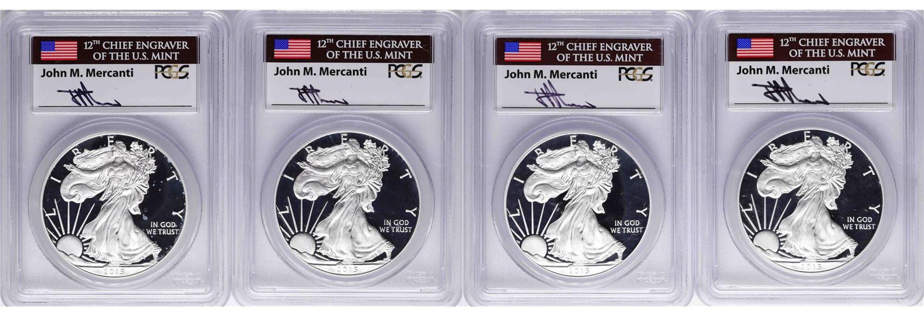 2015-W $1 American Silver Eagle Mercanti First Day of Issue Set PCGS PR70DCAM