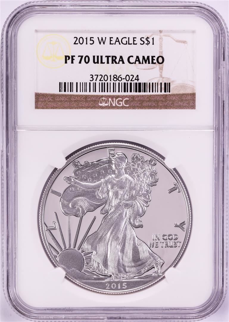 One 2015-W $1 Proof American Silver Eagle Coin NGC PF70 Ultra Cameo. NGC Certified.