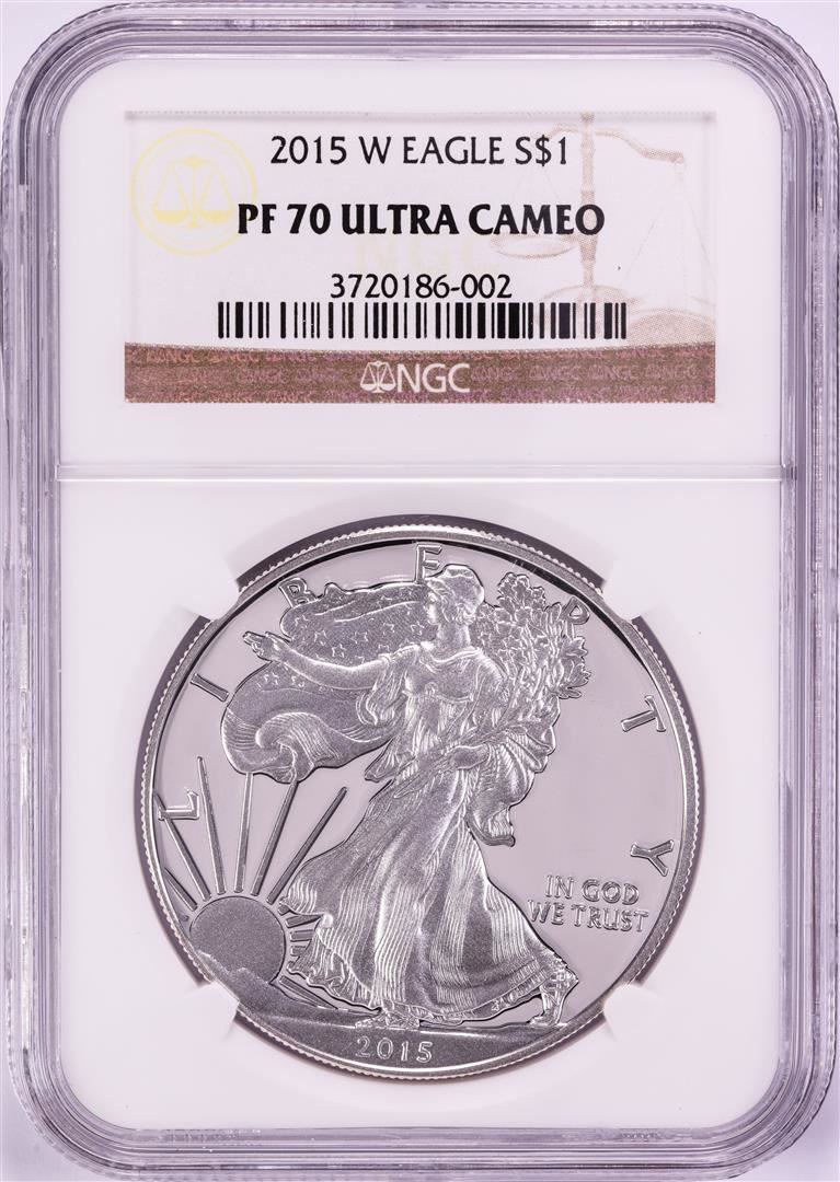 One 2015-W $1 Proof American Silver Eagle Coin NGC PF70 Ultra Cameo. NGC Certified.