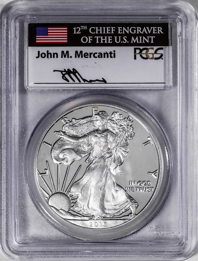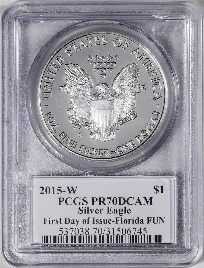One 2015-W $1 Proof American Silver Eagle Coin PCGS PR70DCAM Mercanti Signature, please note there is a chip on the reverse of the holder as shown in the pictures. PCGS Graded.