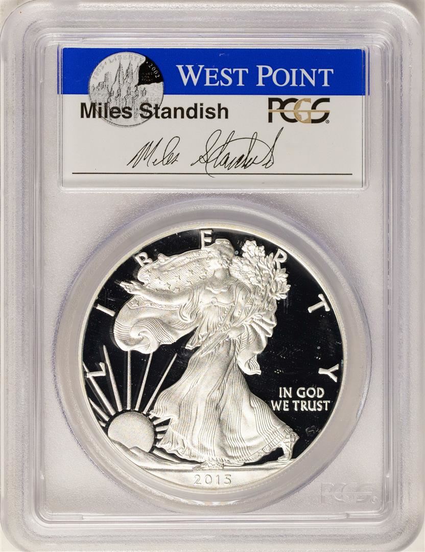 2015-W $1 Proof American Silver Eagle Coin PCGS PR70DCAM W/Miles Standish Signat