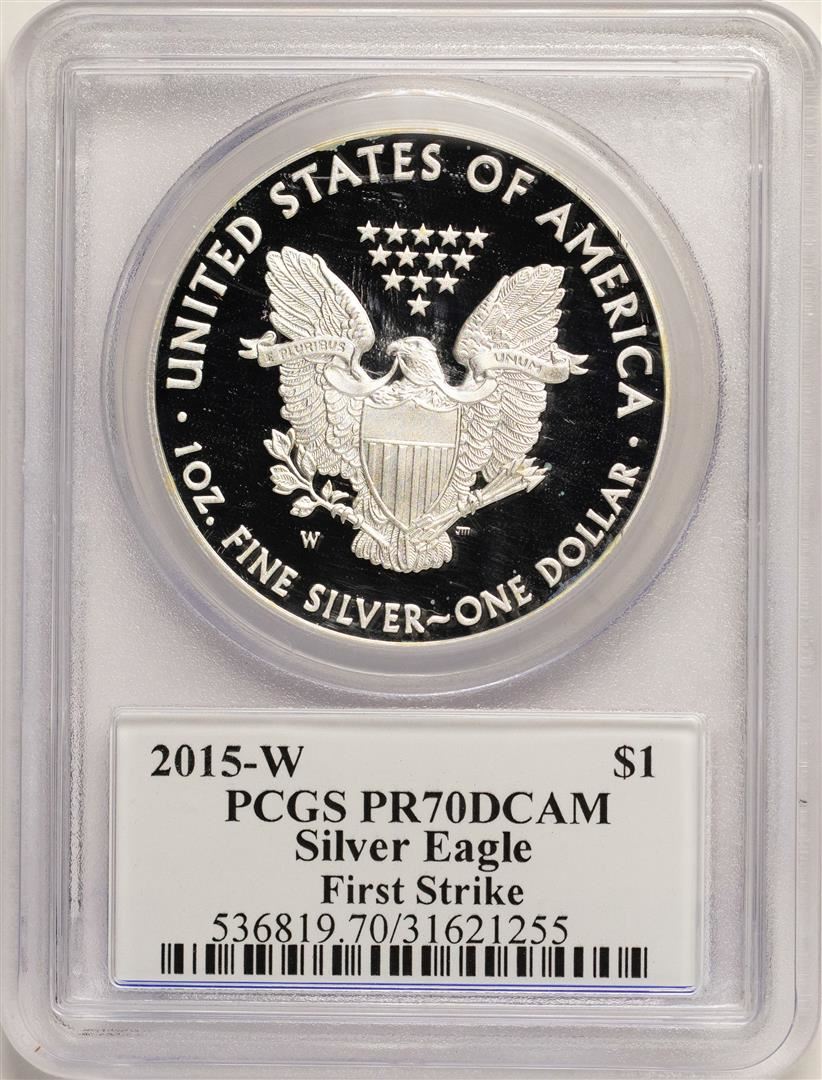 One 2015-W $1 Proof American Silver Eagle Coin PCGS PR70DCAM W/Miles Standish Signature. PCGS Graded.