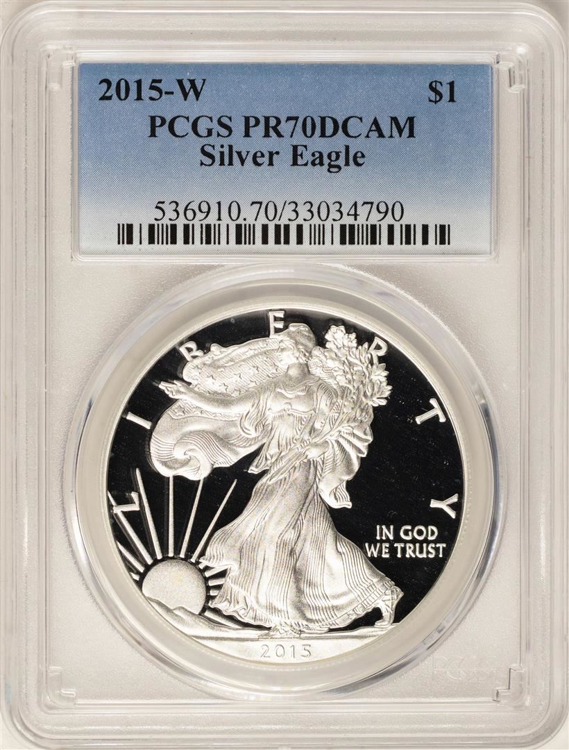 One 2015-W $1 Proof American Silver Eagle Coin PCGS PR70DCAM. PCGS Graded.