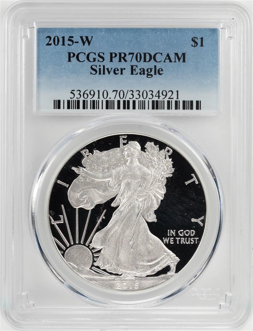 One 2015-W $1 Proof American Silver Eagle Coin PCGS PR70DCAM. PCGS Graded.