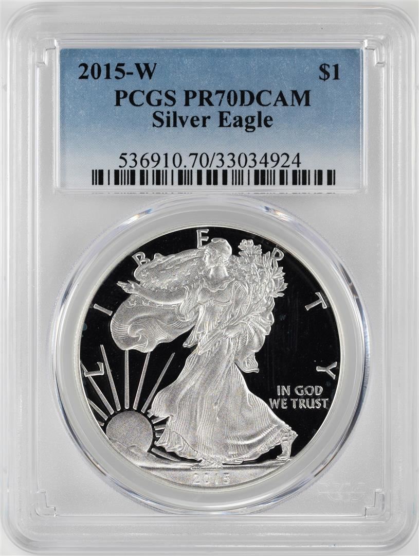 One 2015-W $1 Proof American Silver Eagle Coin PCGS PR70DCAM. PCGS Graded.