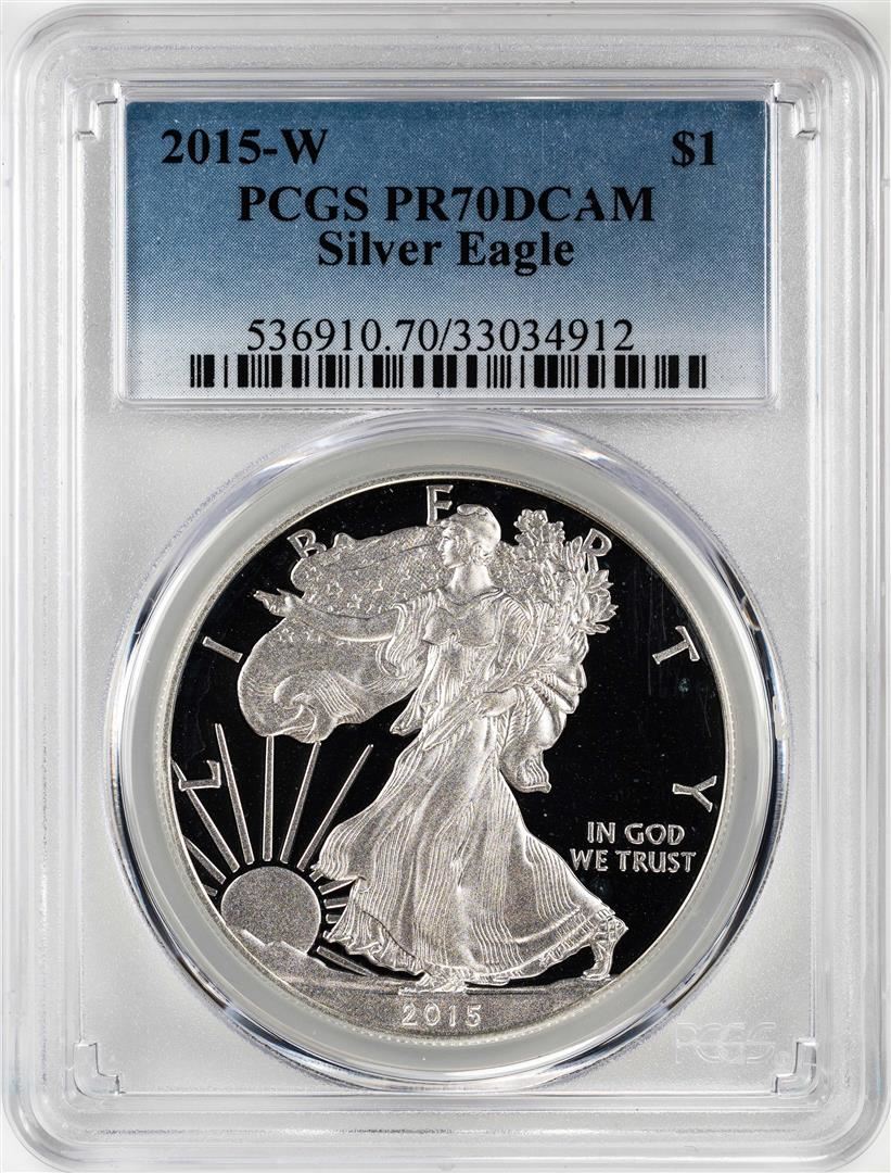 One 2015-W $1 Proof American Silver Eagle Coin PCGS PR70DCAM. PCGS Graded.