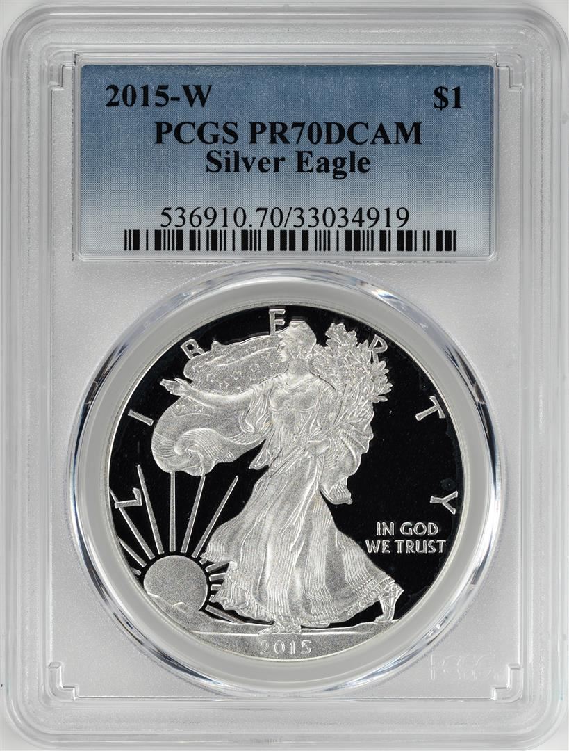 One 2015-W $1 Proof American Silver Eagle Coin PCGS PR70DCAM. PCGS Graded.
