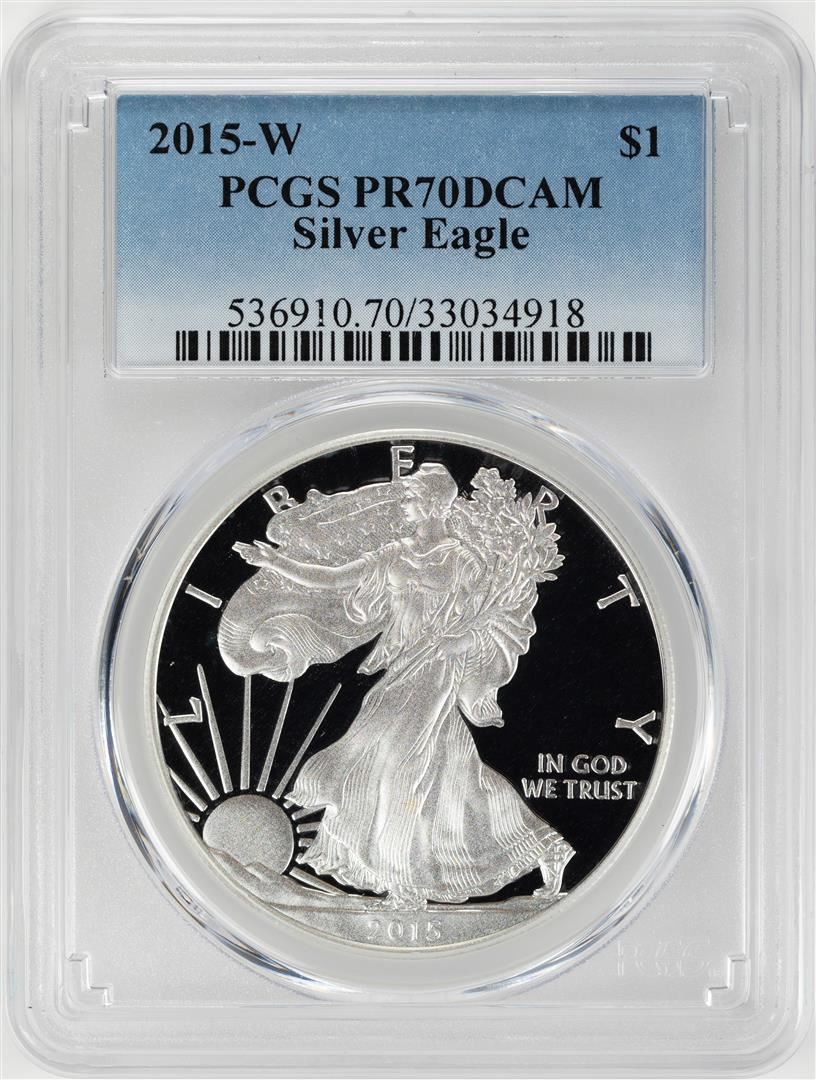One 2015-W $1 Proof American Silver Eagle Coin PCGS PR70DCAM. PCGS Graded.