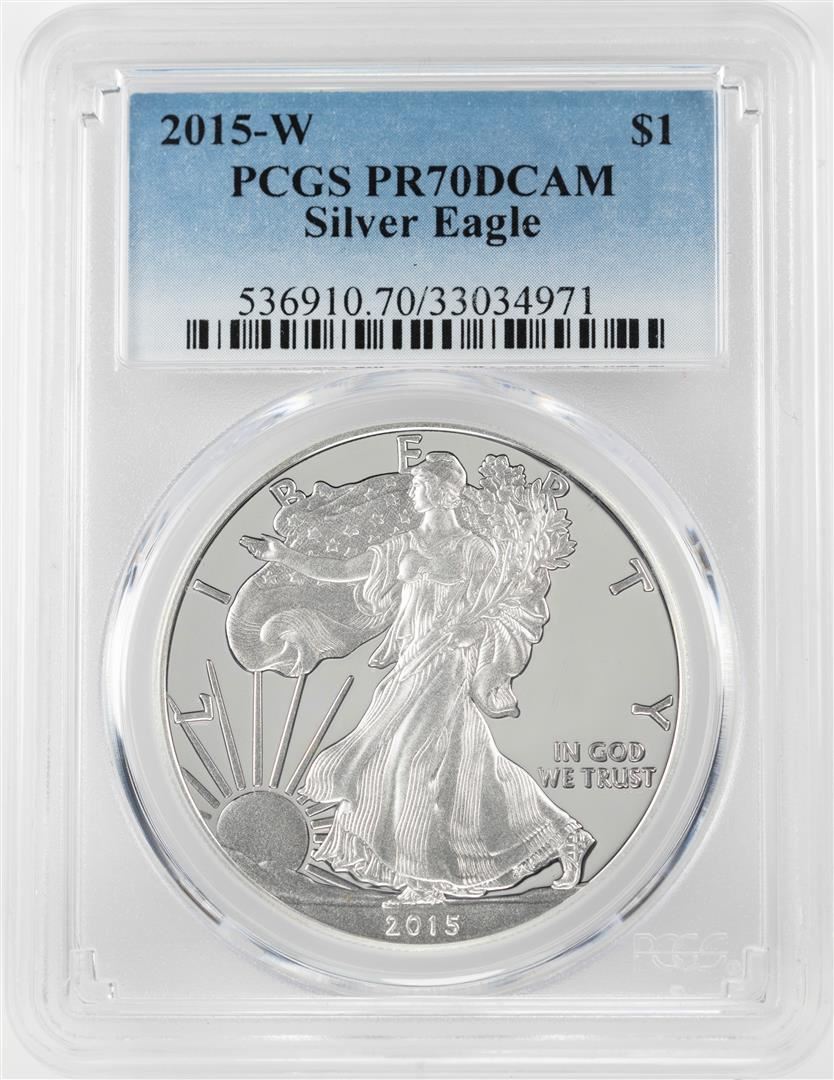 One 2015-W $1 Proof American Silver Eagle Coin PCGS PR70DCAM. PCGS Graded.