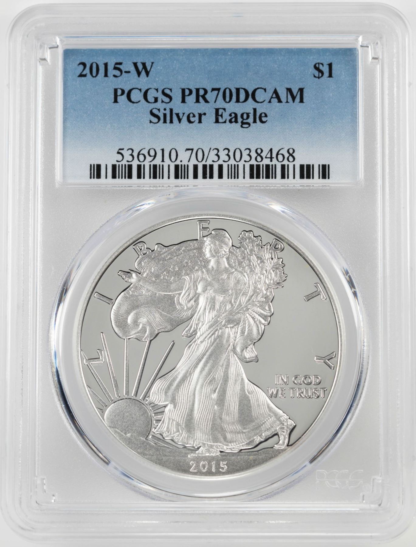 One 2015-W $1 Proof American Silver Eagle Coin PCGS PR70DCAM.