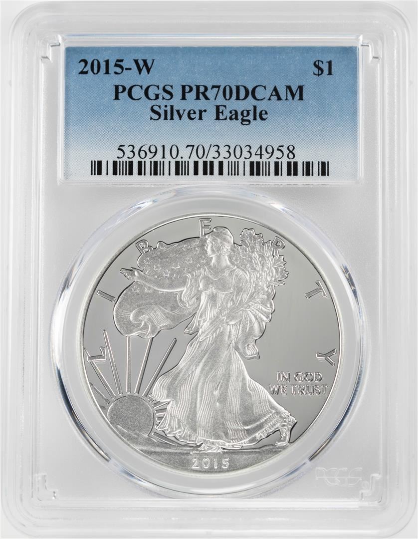 One 2015-W $1 Proof American Silver Eagle Coin PCGS PR70DCAM. PCGS Graded.