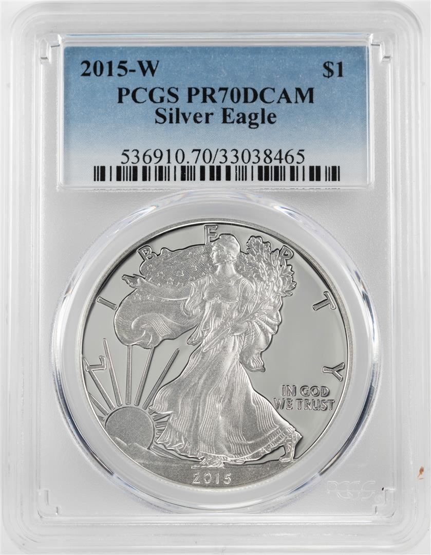 One 2015-W $1 Proof American Silver Eagle Coin PCGS PR70DCAM. PCGS Graded.