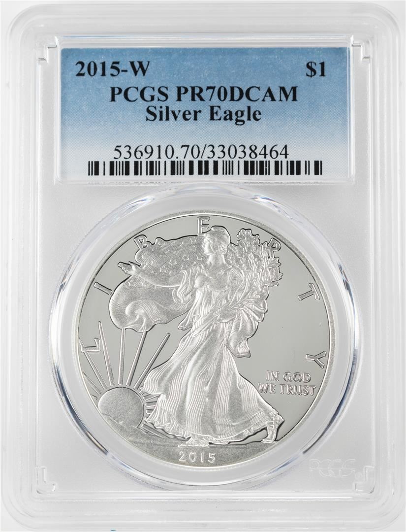 One 2015-W $1 Proof American Silver Eagle Coin PCGS PR70DCAM. PCGS Graded.