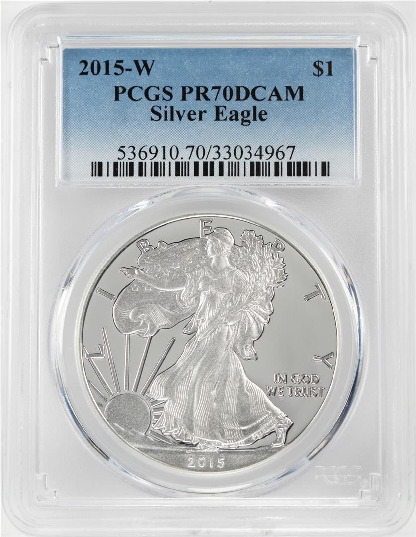 One 2015-W $1 Proof American Silver Eagle Coin PCGS PR70DCAM. PCGS Graded.